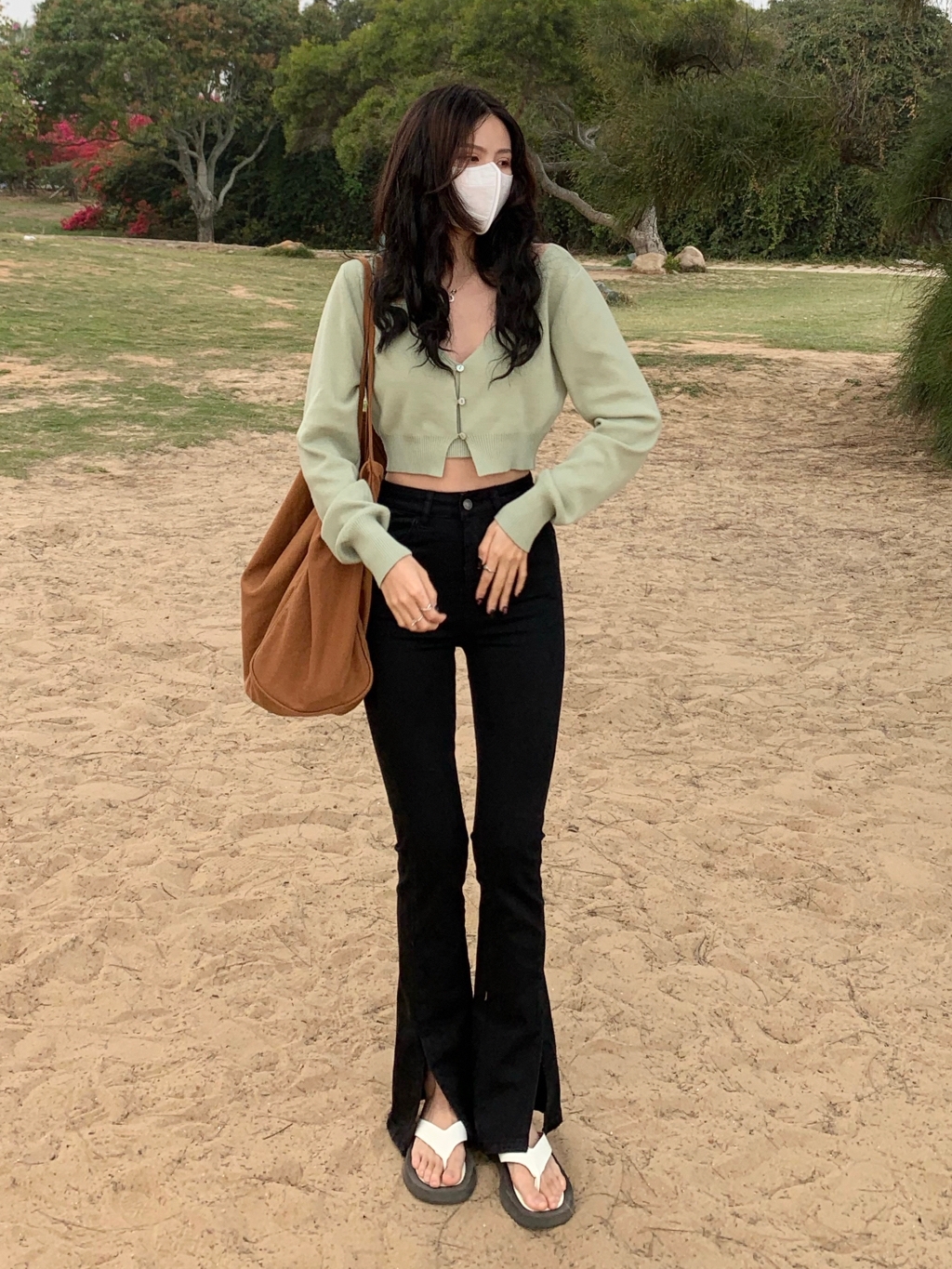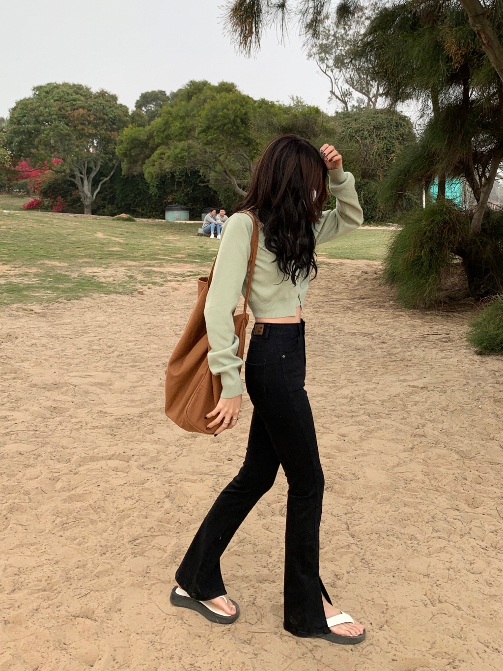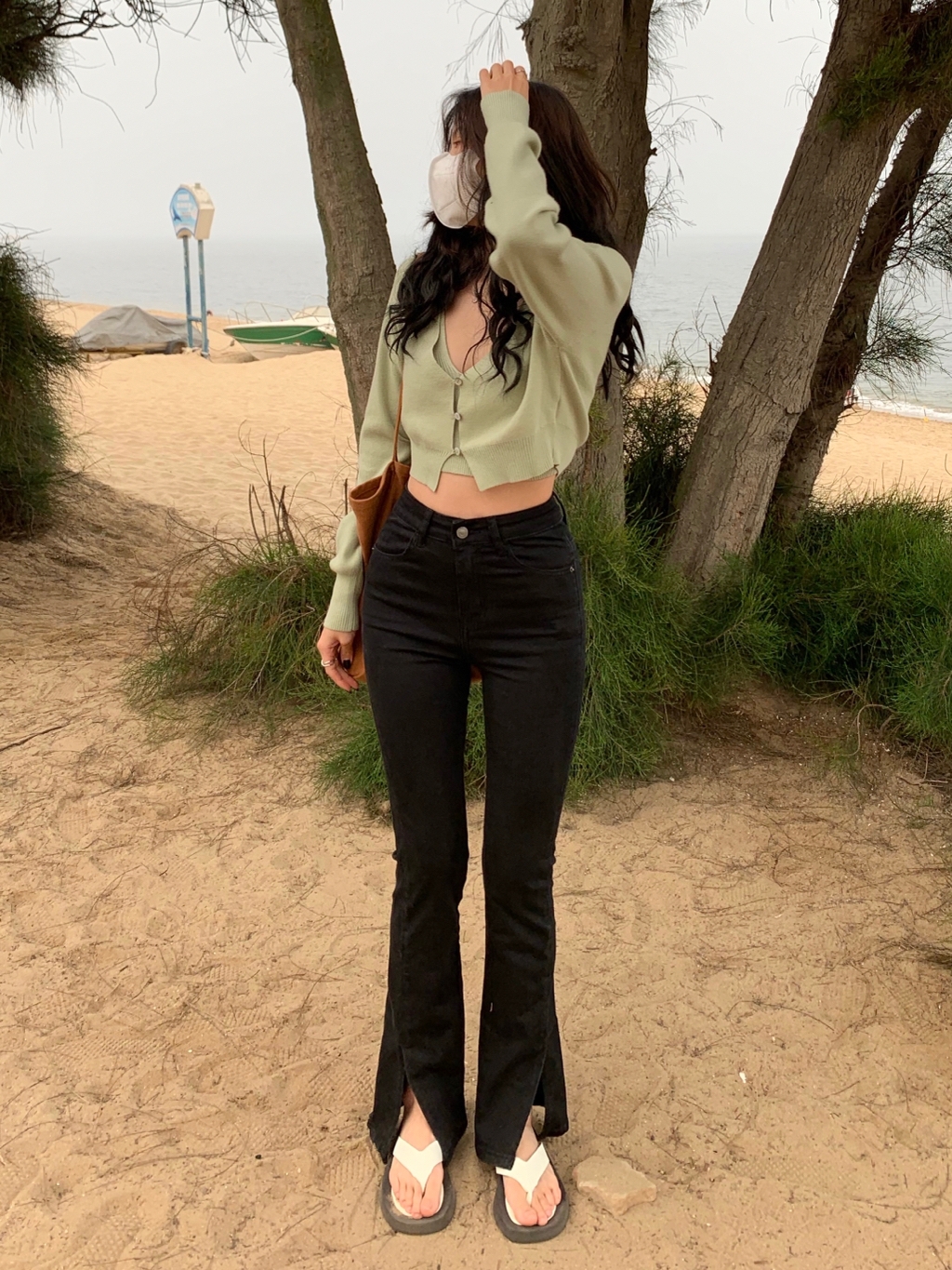 梨形身材的我也勇敢穿了一次紧身牛仔,最近开叉牛仔裤超火,这件牛仔裤版型超正,梨形身材穿上也毫无压力,超显腿长。