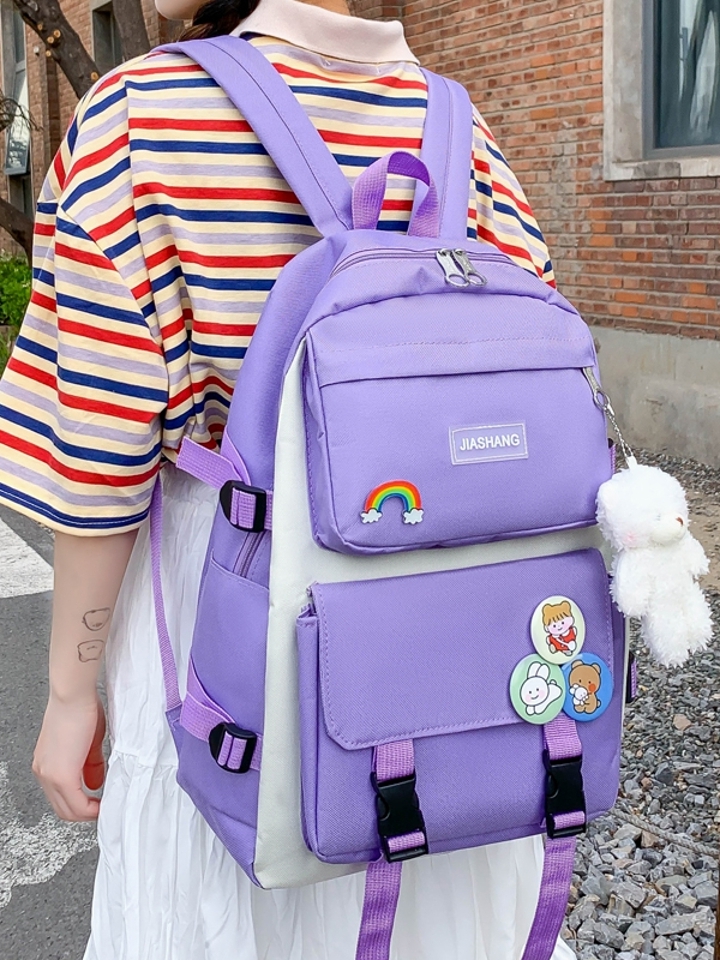 学生大容量男女潮包。15英寸。随身暗袋,雨伞收纳,侧边置物袋,前侧拉链置物袋。打开有文具收纳袋,可放入笔记本电脑。