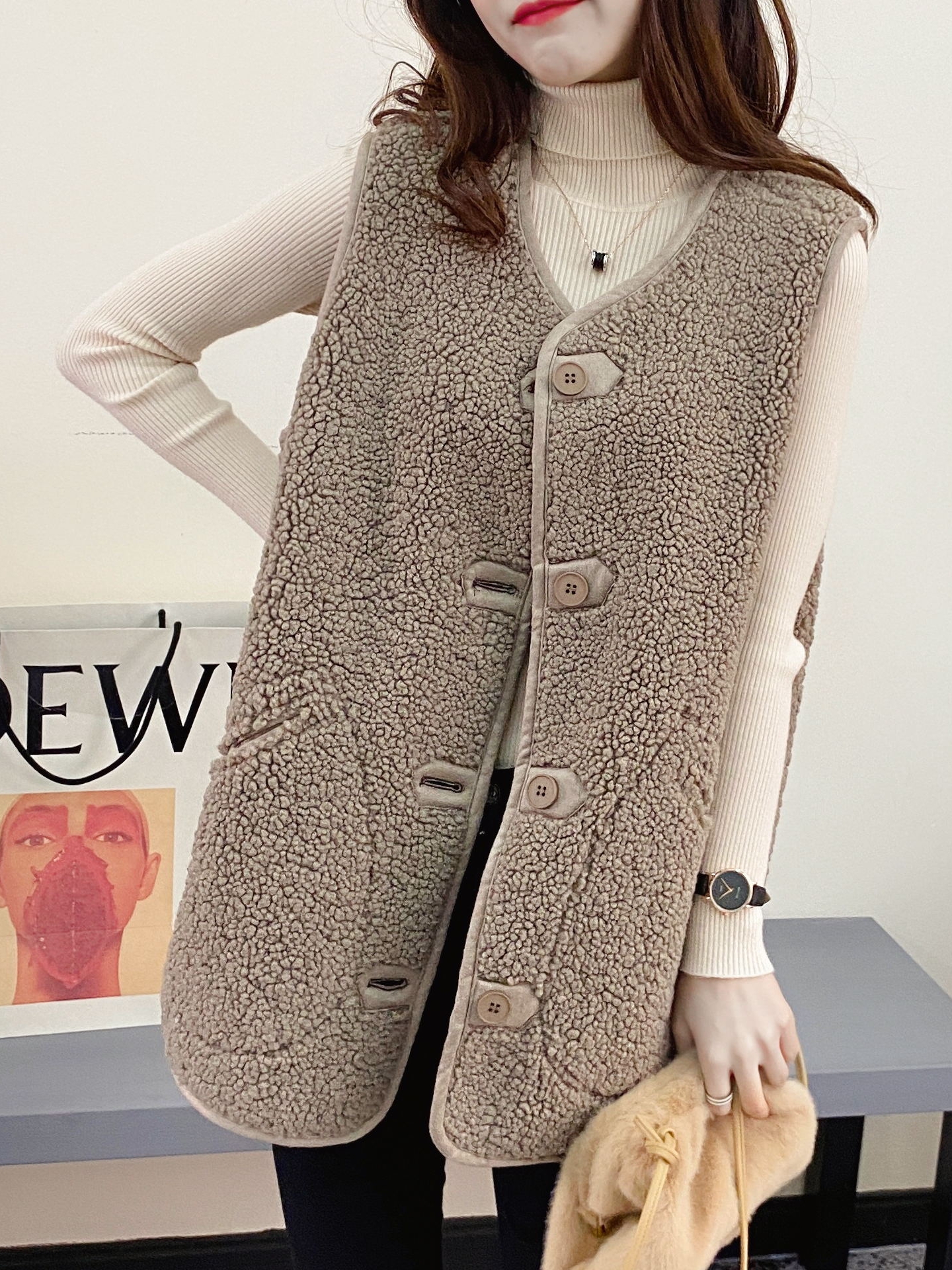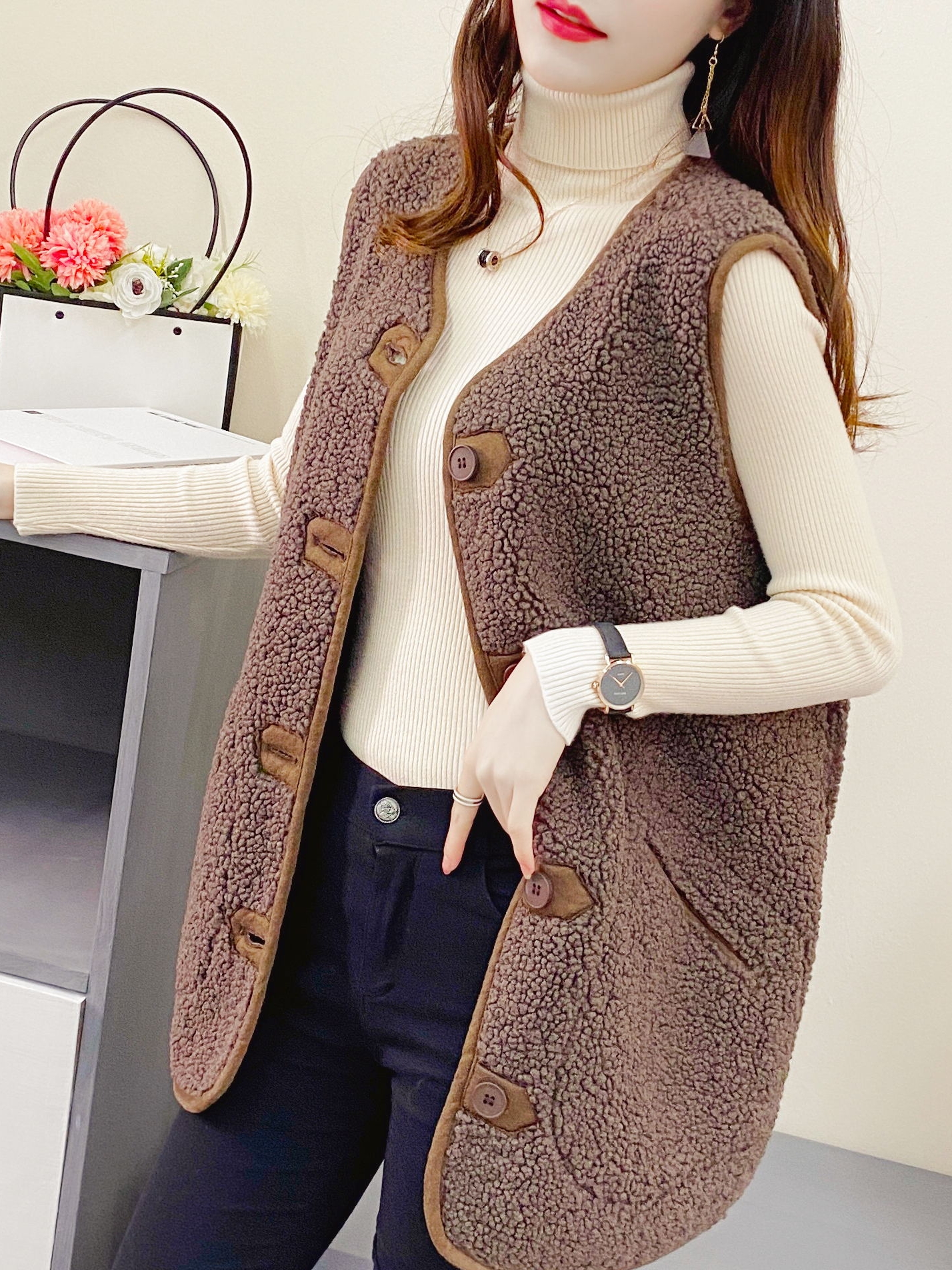 这款无袖马甲我和闺蜜一人买了一件,因为性价比很高,而且款式也好看~它是韩版的那种,设计比较简约,但是上身很有时尚感。