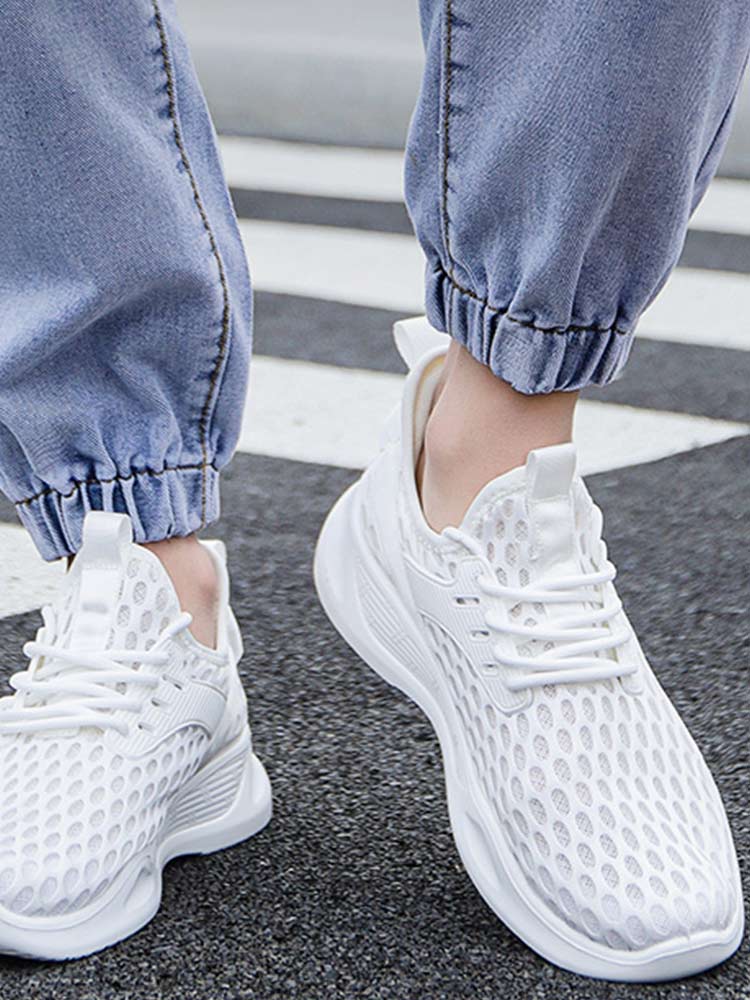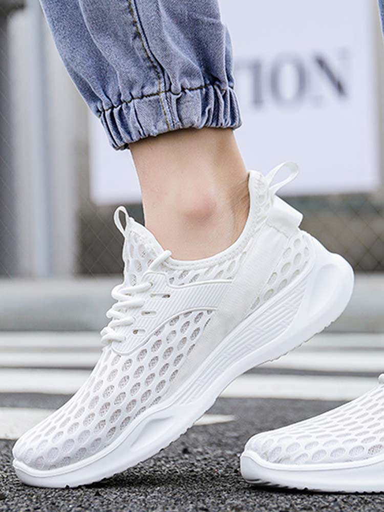内里选用网纱的材质,不会使你的脚部感到闷热感。鞋底选用了聚氨酯材质,非常的轻便并且耐磨损,不管走多少路都不会出现裂痕。网布的鞋面富有十足的弹性。