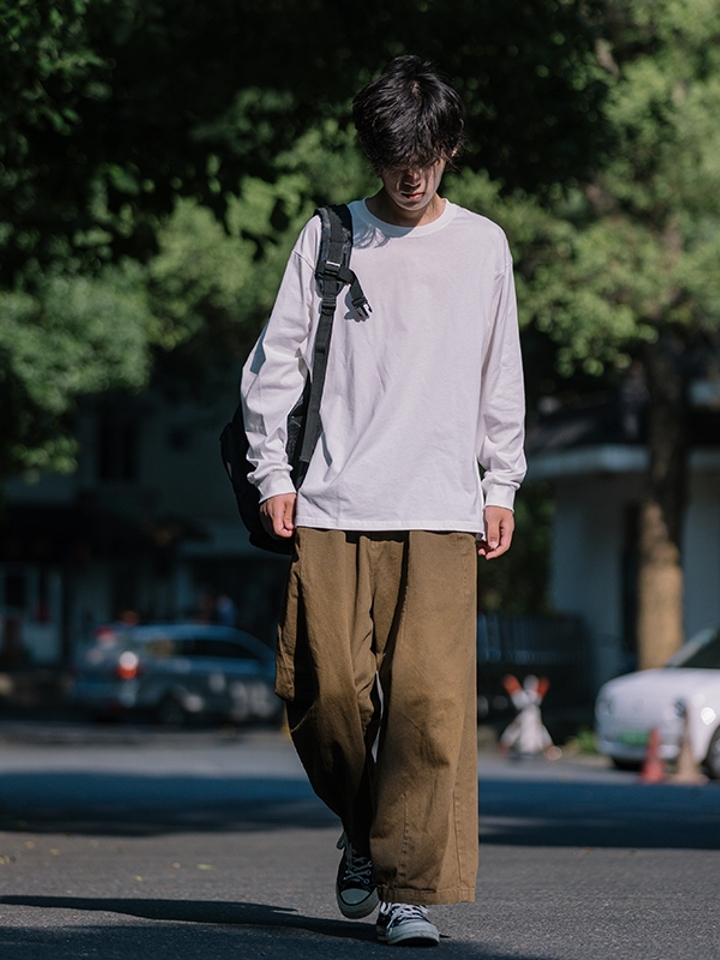 松直筒版型设计,清爽自在,裤管处的带盖口袋,工装气息十足,美观而实用。