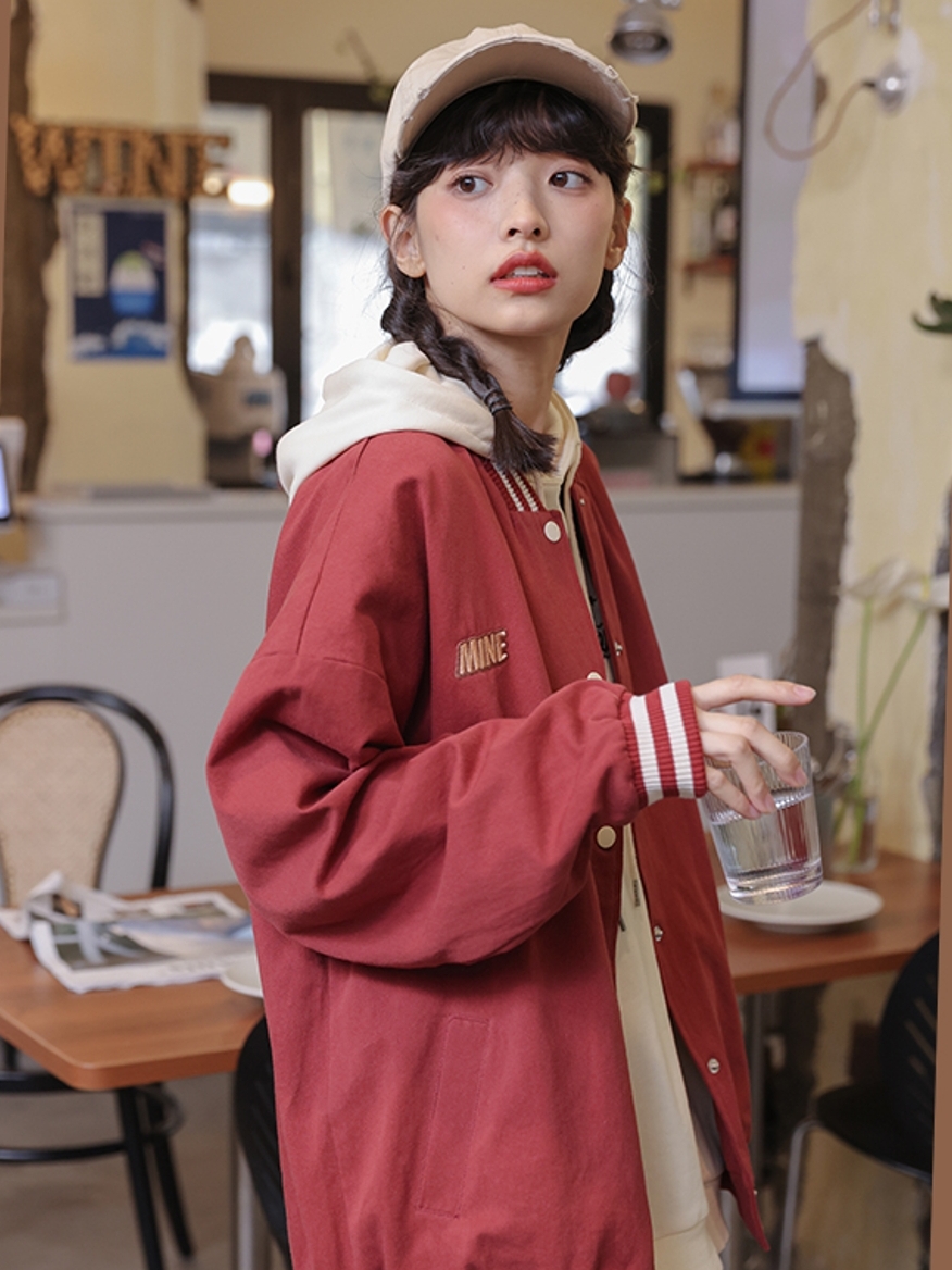 宽松的针织外套,采用棒球服的造型,短款的夹克上衣,十足帅气中性女神的风格,款式百搭,还可以自行搭配。