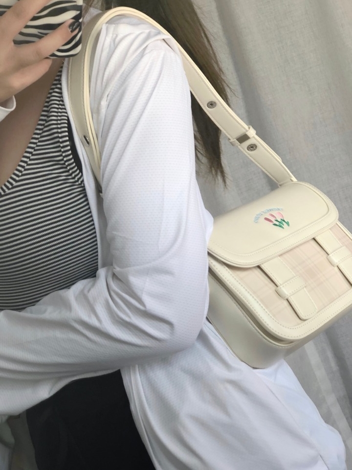 包包是奶白色系的设计,不会显得过于沉闷,而起也充满了温柔的气息。