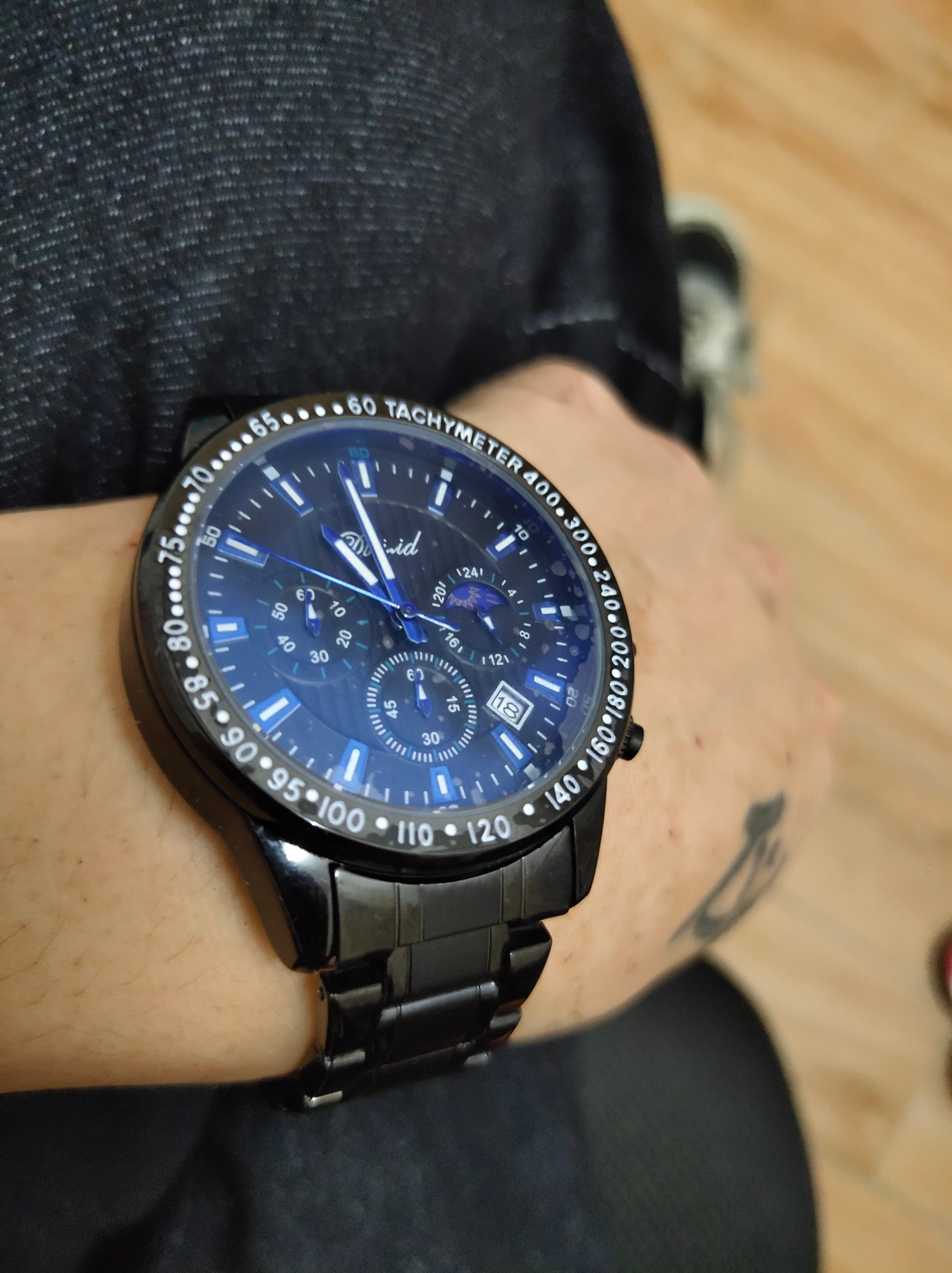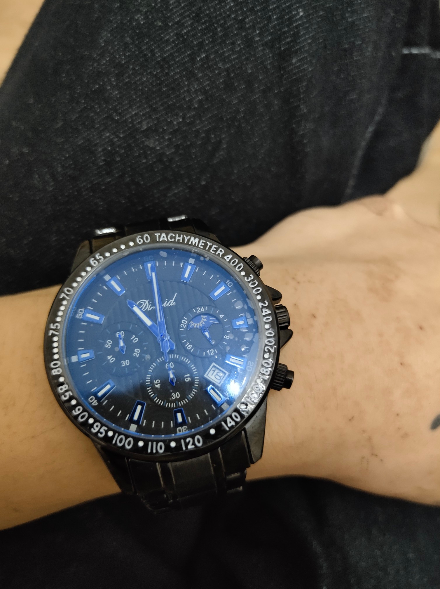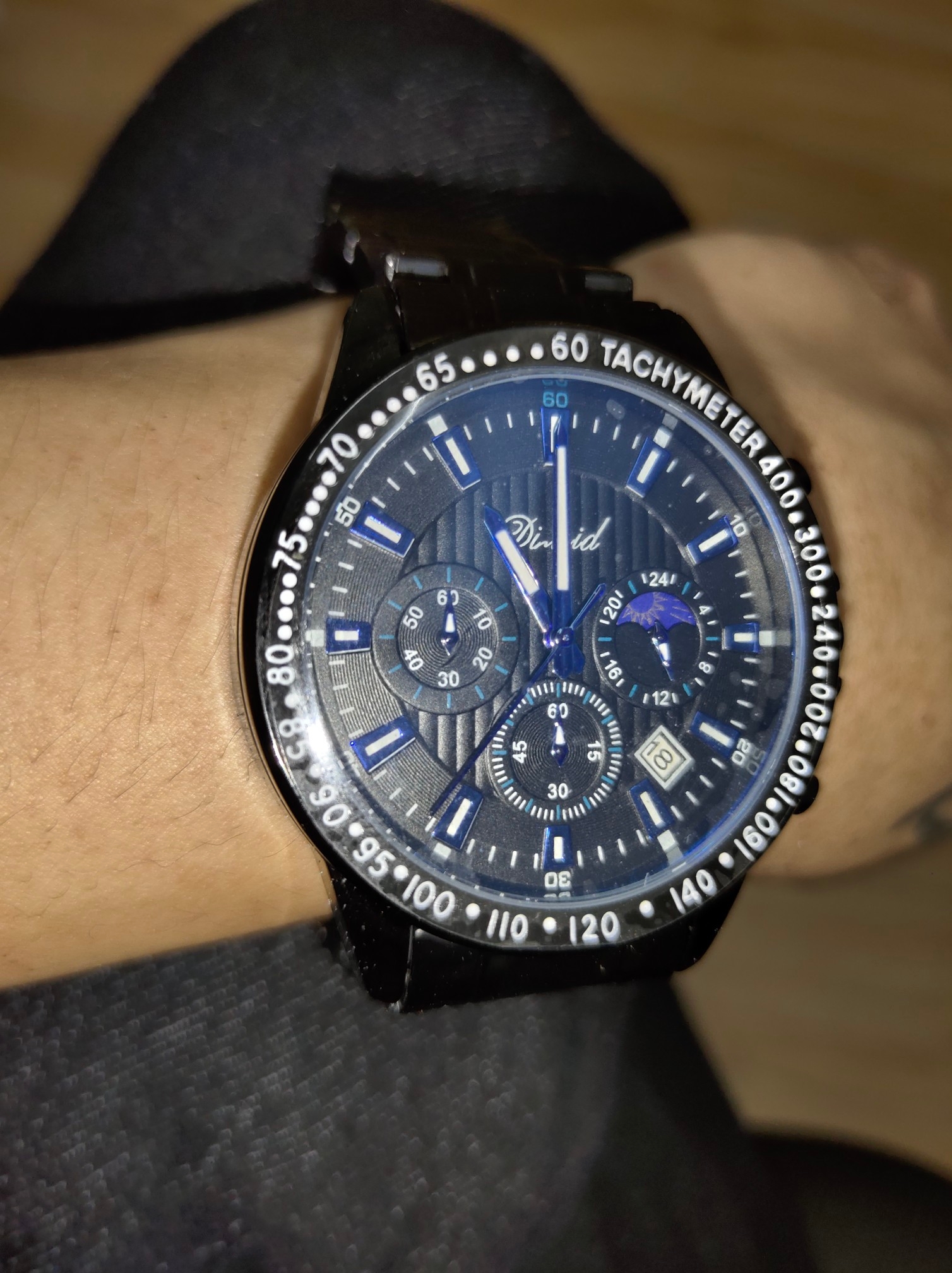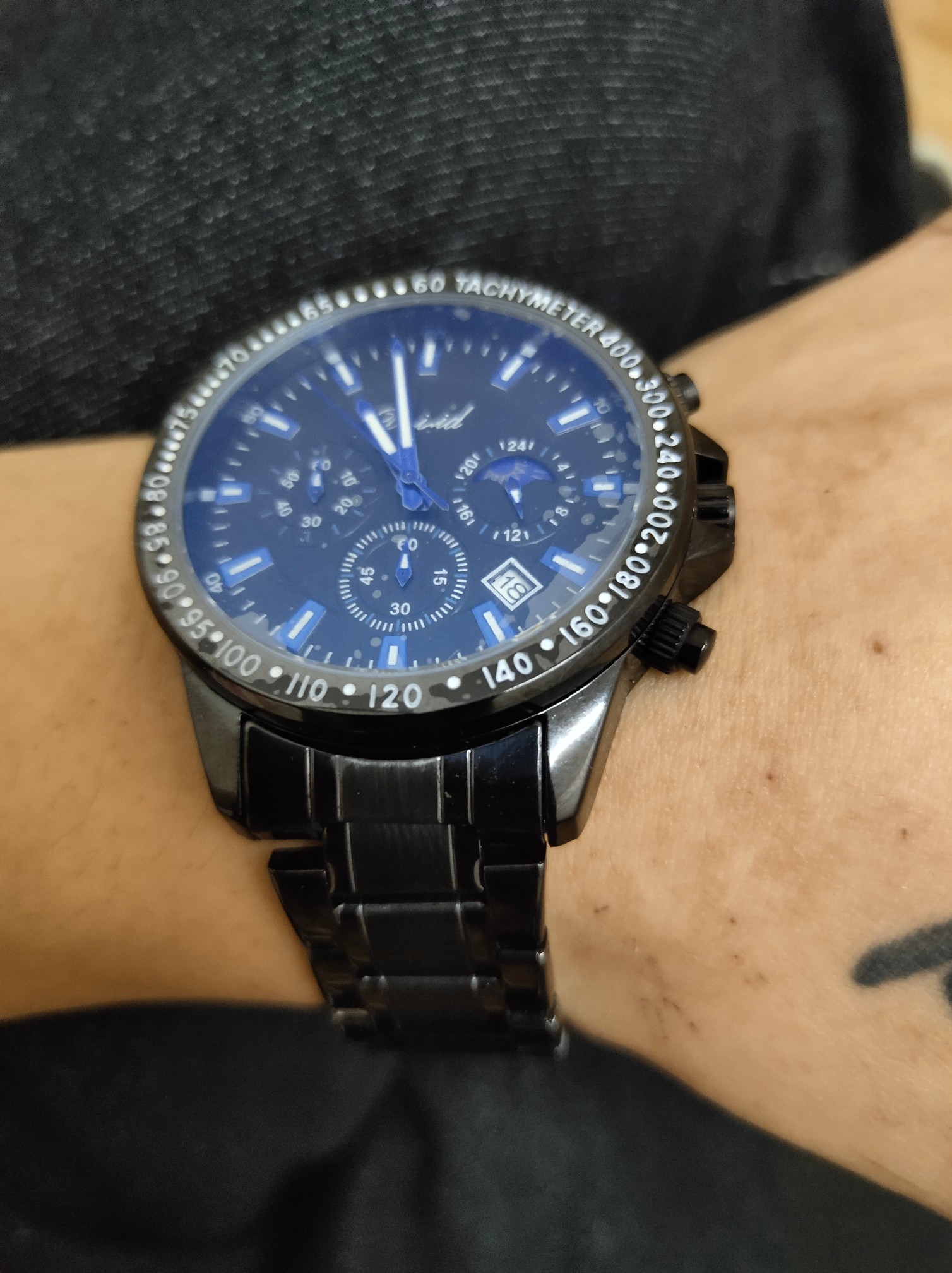 用了几天了,戴上去高端上档次不错,朋友都说手表好看。手表很不错,颜色很正,带上去很衬皮肤,时尚潮流多功能的表盘,我很喜欢。