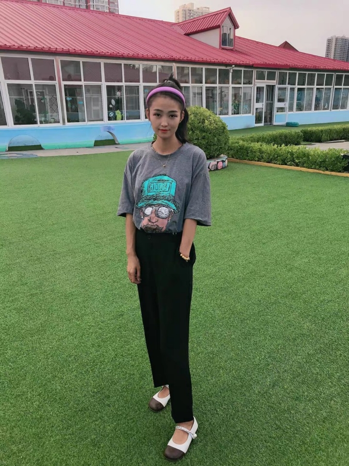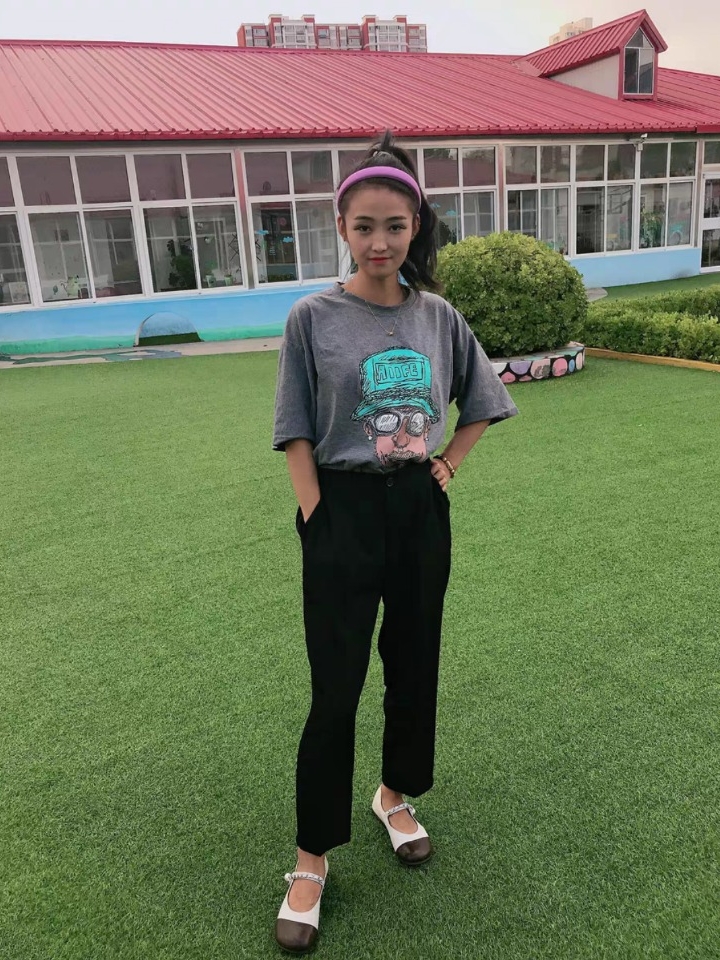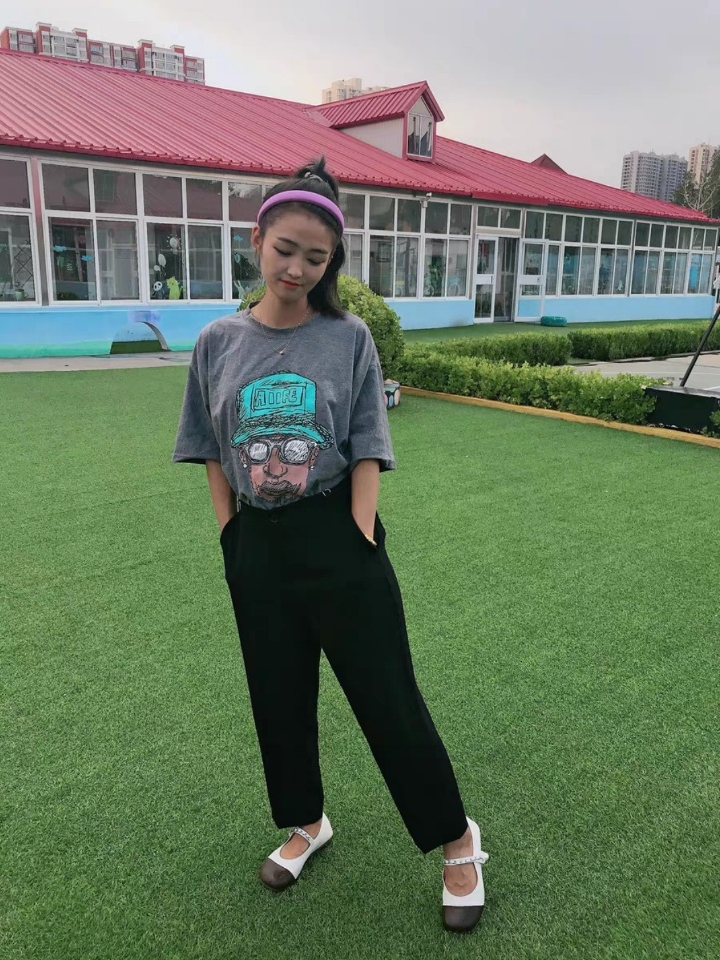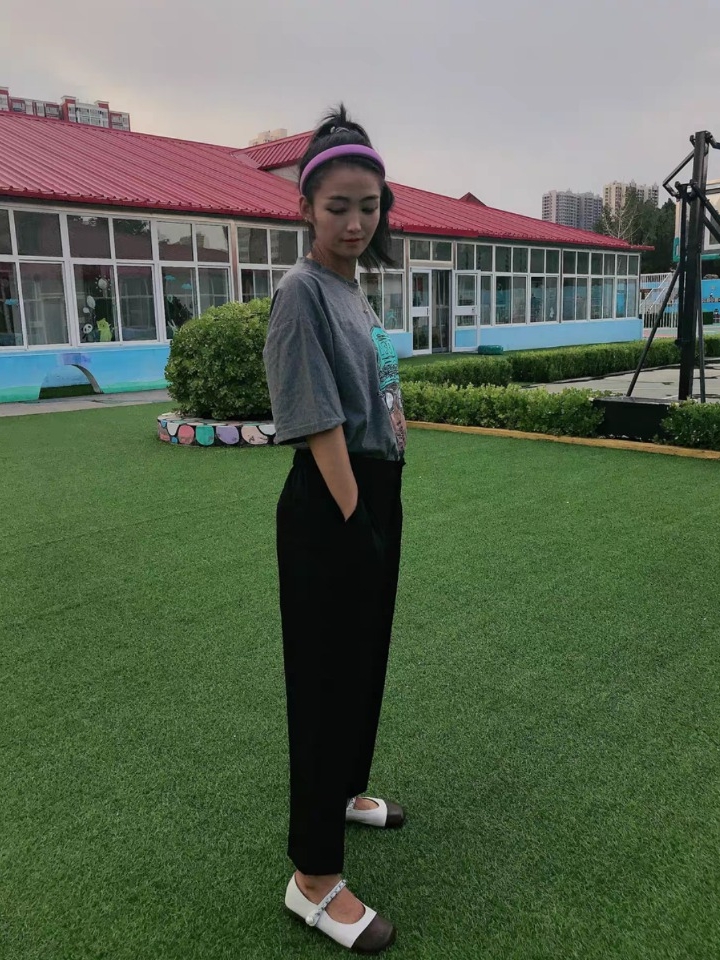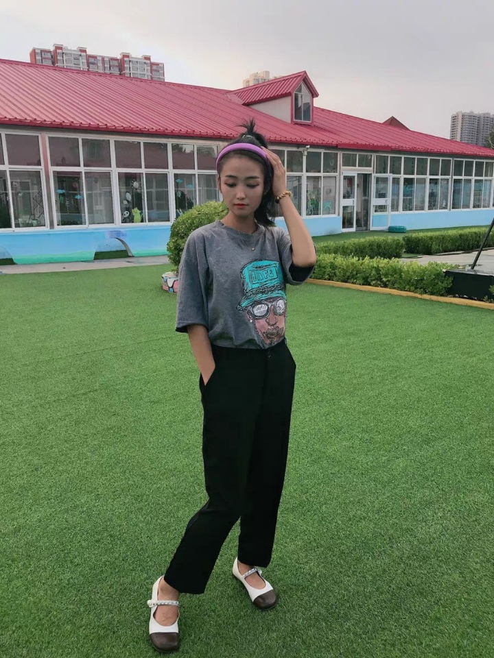 建议搭配一款亮色的宽松短袖和半拖小白鞋穿着,亮色的宽松短袖有一种浓浓的休闲气息,和这款裤子搭配在一起会给人一种闲适惬意的感觉,半拖小白鞋简约百搭,有很好的减龄效果,同时也可以保证穿着的舒适程度。