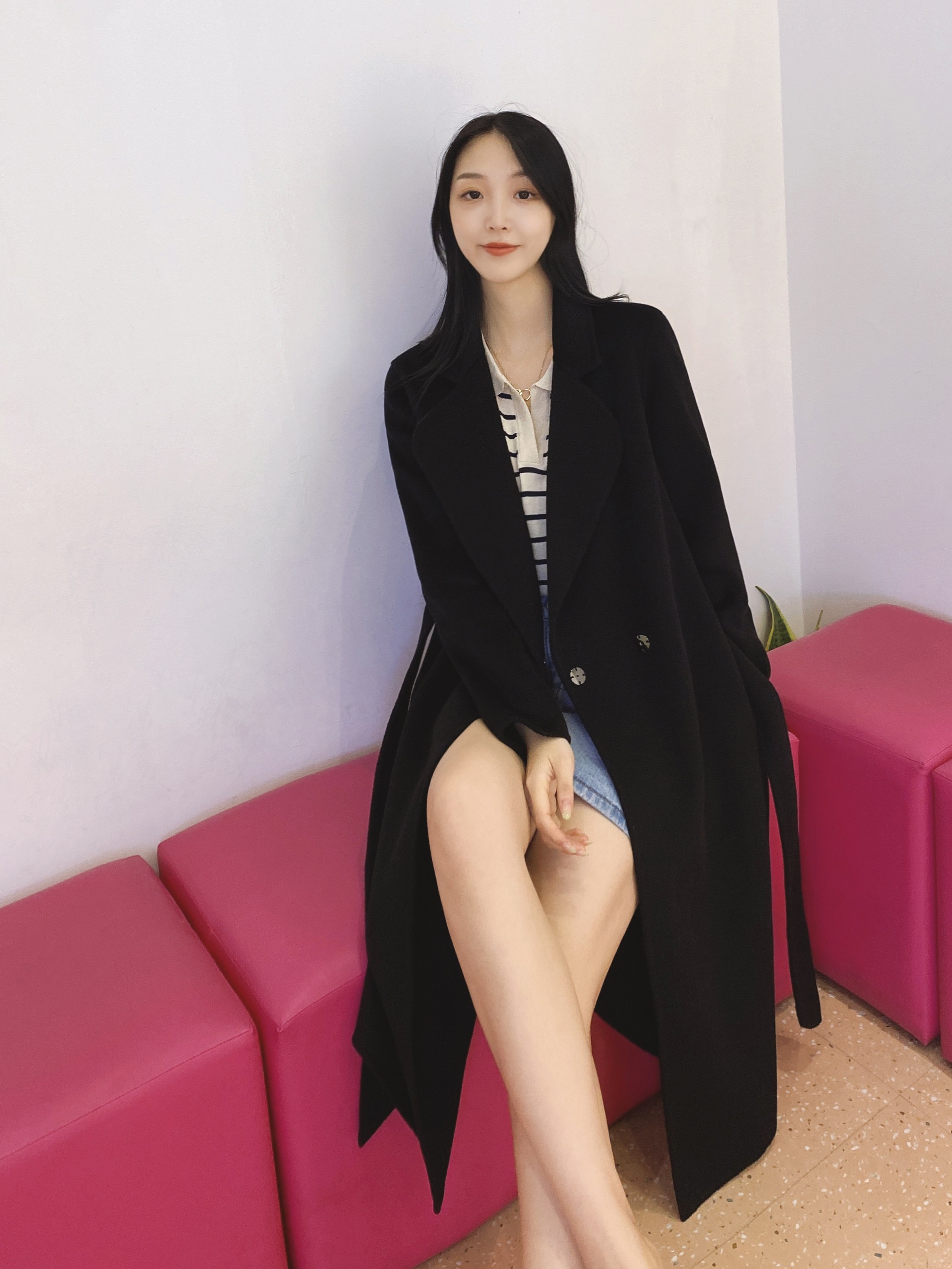 这款大衣是长款的版型,我觉得穿着很显瘦,平时可以搭配毛衣和牛仔裤,也能像这样搭配短裤或者短裙,再配上靴子或者高跟鞋就OK啦,怎么穿都好看的哟~