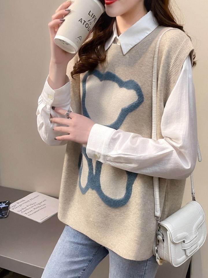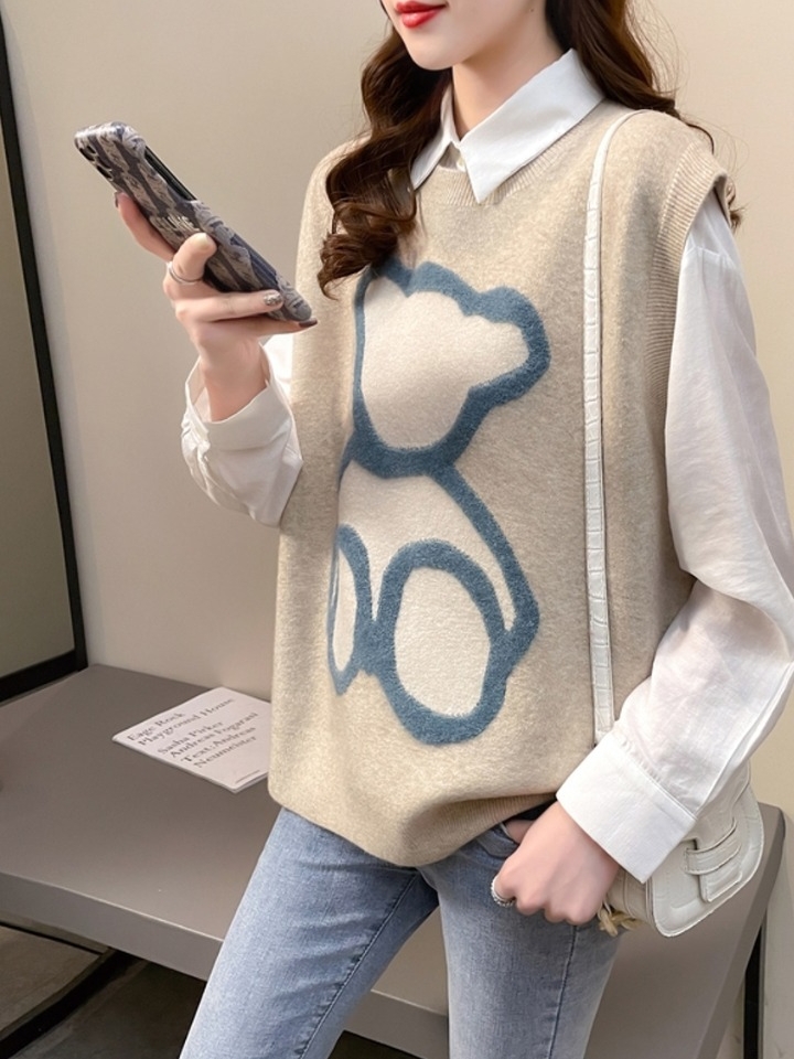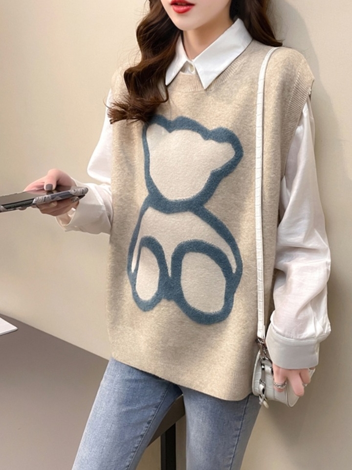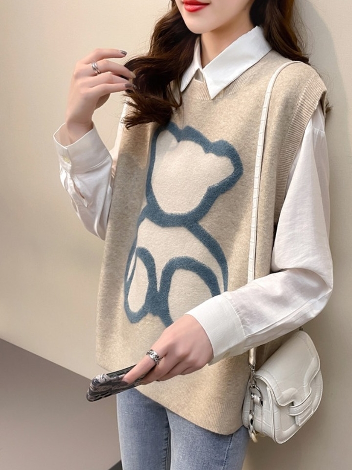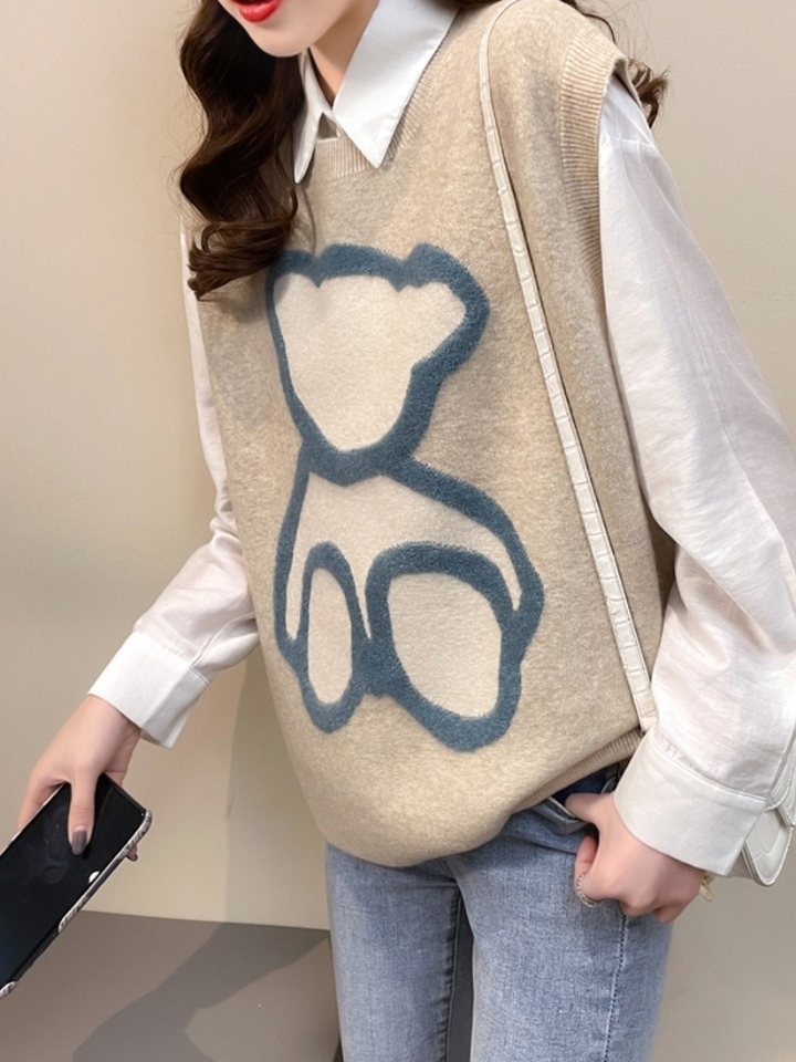 非常柔软舒适又极具吸睛效果的一款休闲小熊针织马甲,修身的款式非常凸显身材当做内搭也非常舒适不会臃肿,印花设计更是增加了吸睛效果,