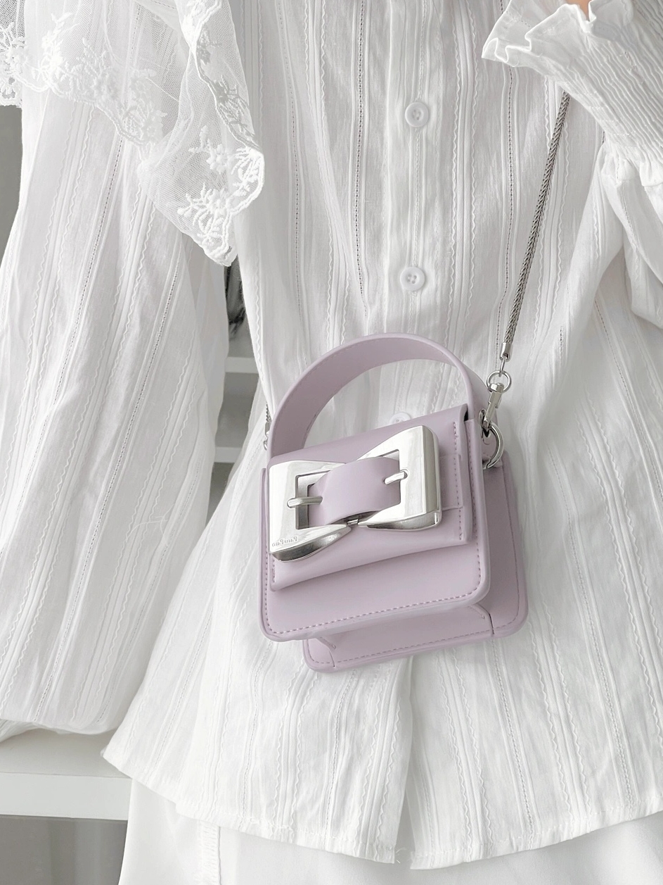 这只包包虽然很小只,但这个金属蝴蝶结做的很精致,五金质感很棒。