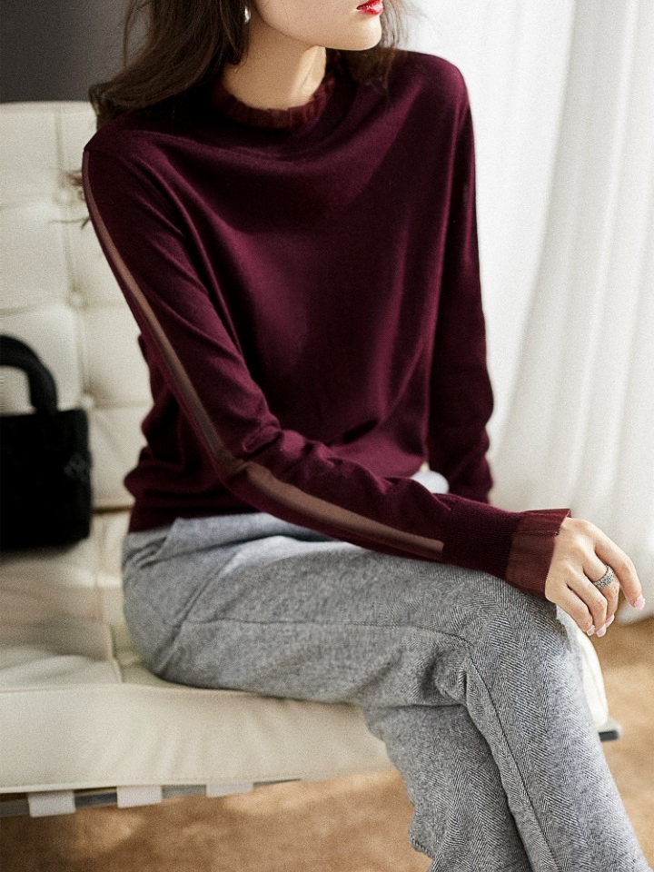 前片的木耳边拼接精致优雅甜美可爱俏皮让纯色的衣服不那么单调,既减龄又为整体增添了几分浪漫甜美的感觉,小宽松的版型上身没有束缚感,下摆的拼接更添了些许少女气息,穿上身感觉自己还是年轻的模样,经典的圆领的版型有拉长脖颈线修饰脸型的效果。