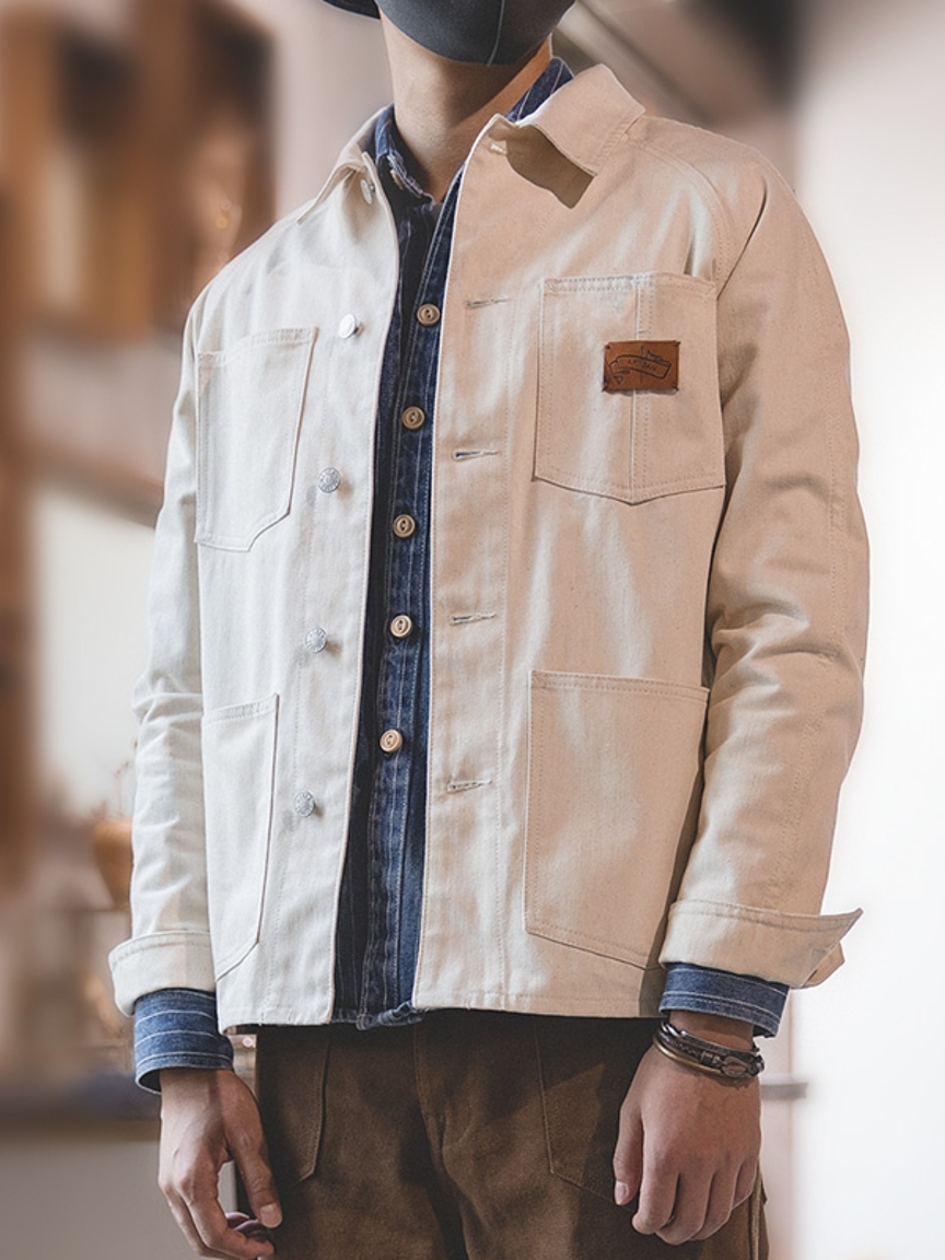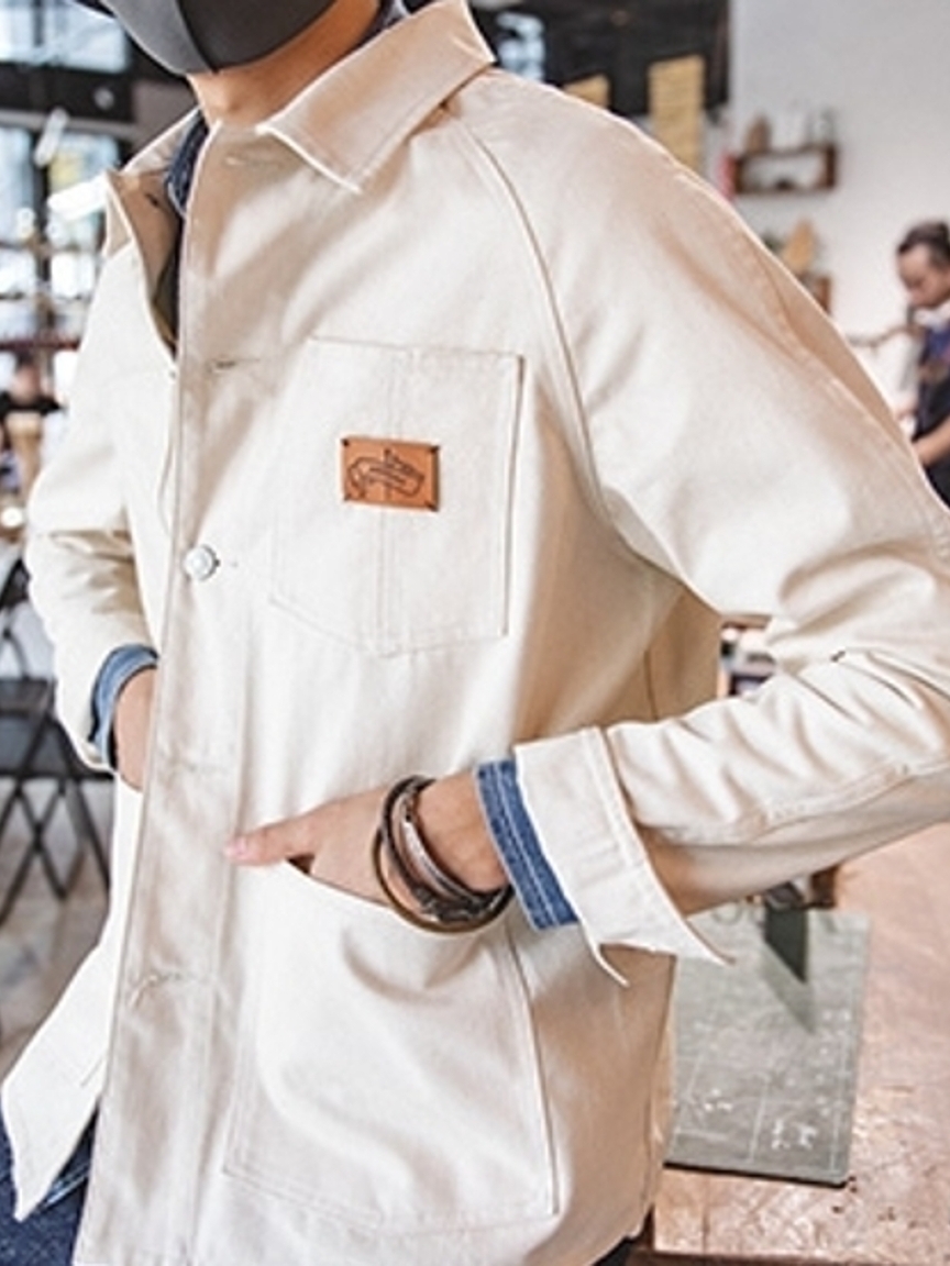 纯色版面上对称设有平口口袋,简约美观又能颇为帅气。口袋上带有撞色的图标装饰,可以增添亮点和美观性。