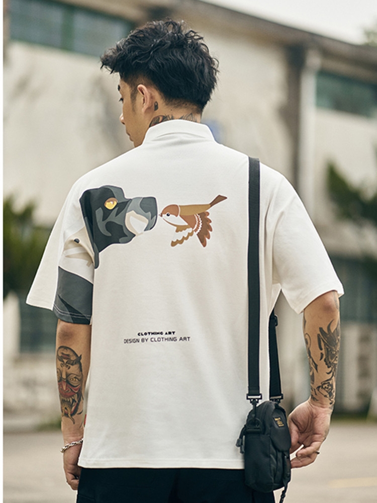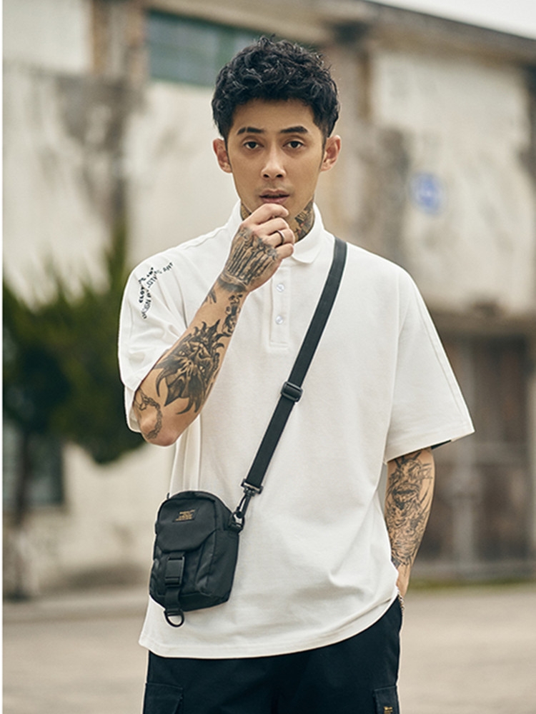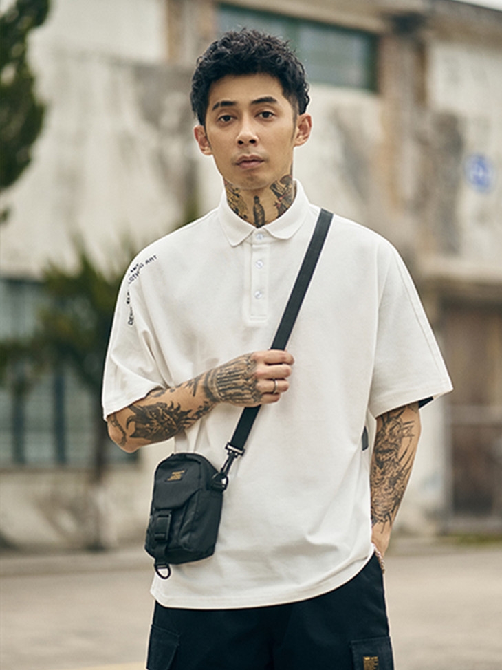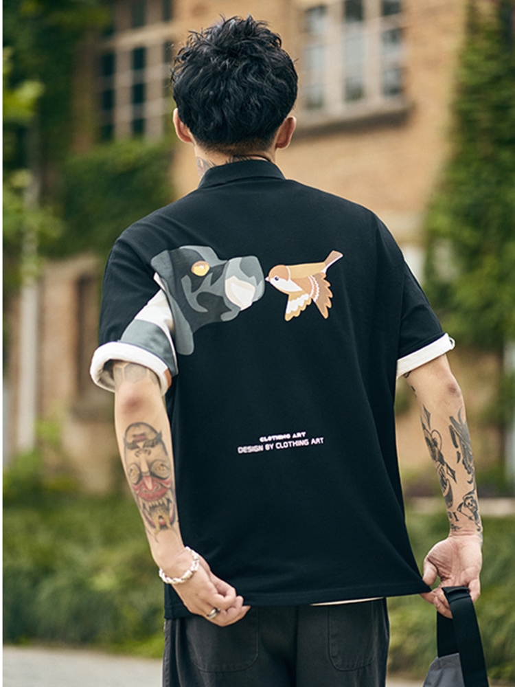 休闲卡通风格的POLO衫,吸晴MAX,以复古、街头为理念打造,趣味灵动的卡通元素搭配肩膀处英文字母的设计,让POLO衫时髦度更高。