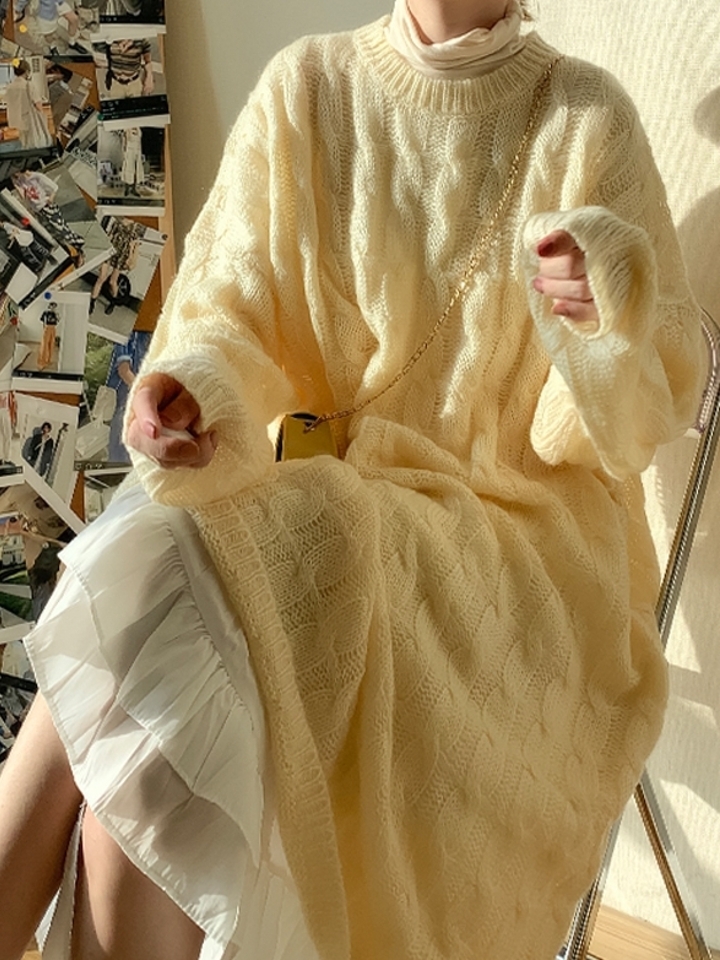 来一场文艺风范的冬天秀吧~这件无论单穿或是内搭都不会显得臃肿的清新文艺长毛衣,采用了兔毛的面料穿起来舒服,宽松直筒可以内搭衬衫,清新百搭学院风 也很适合搭配在大衣和棉服里面,显瘦显气质~