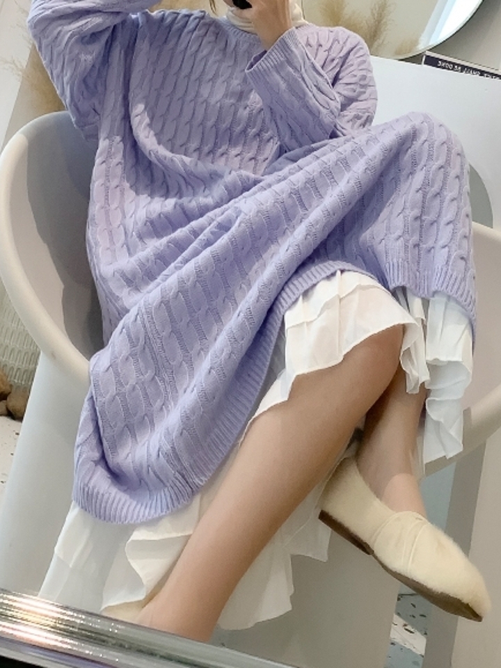 香芋紫是一种很灵魂的色彩,总是让人能一眼记住,而且上身超显肤白。这款针织开衫做了过小腿的长度,大的可以包容你所有的一切,随意的披在外面就像把整个秋天都披在了身上,慵懒又不失格调~