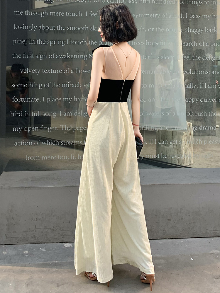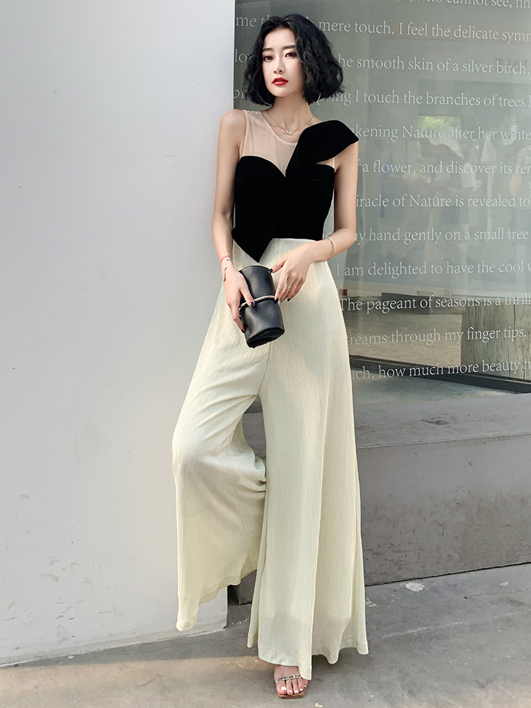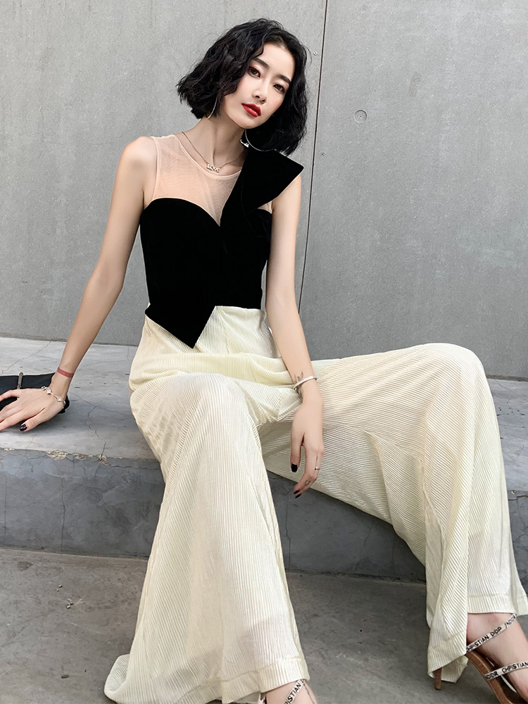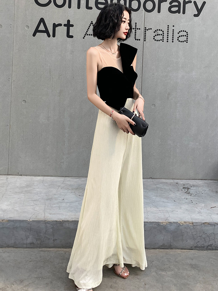 抹胸款式的长款连衣裙,性感有女人味的抹胸设计彰显女性的浪漫优雅,修身高腰的款式拉长身材比例,搭配拼接色裤装,很好的包容性和显瘦效果,上身高挑浪漫。