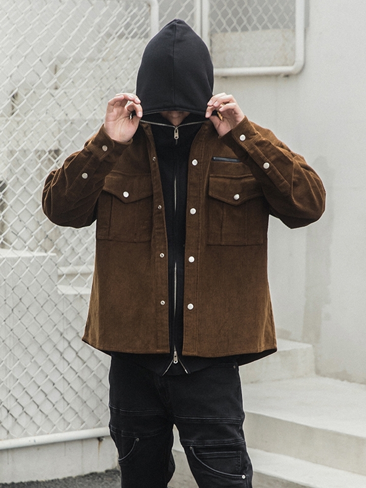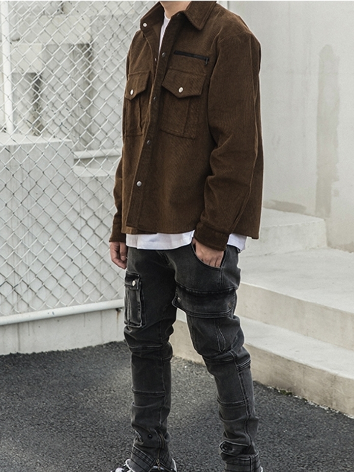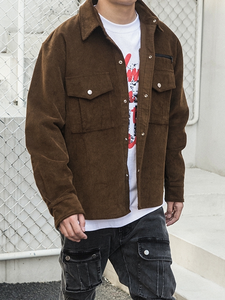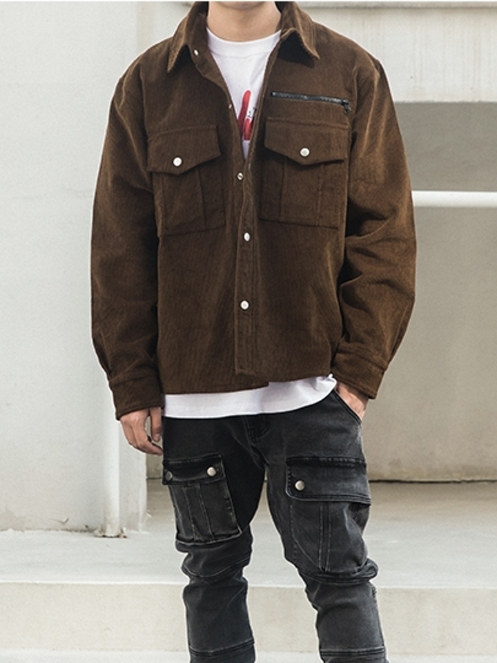 给人带来舒适感的灯芯绒质地,同时也给人温暖的感觉。复古的翻领衬衫,赋有年轻及个性的生命力。