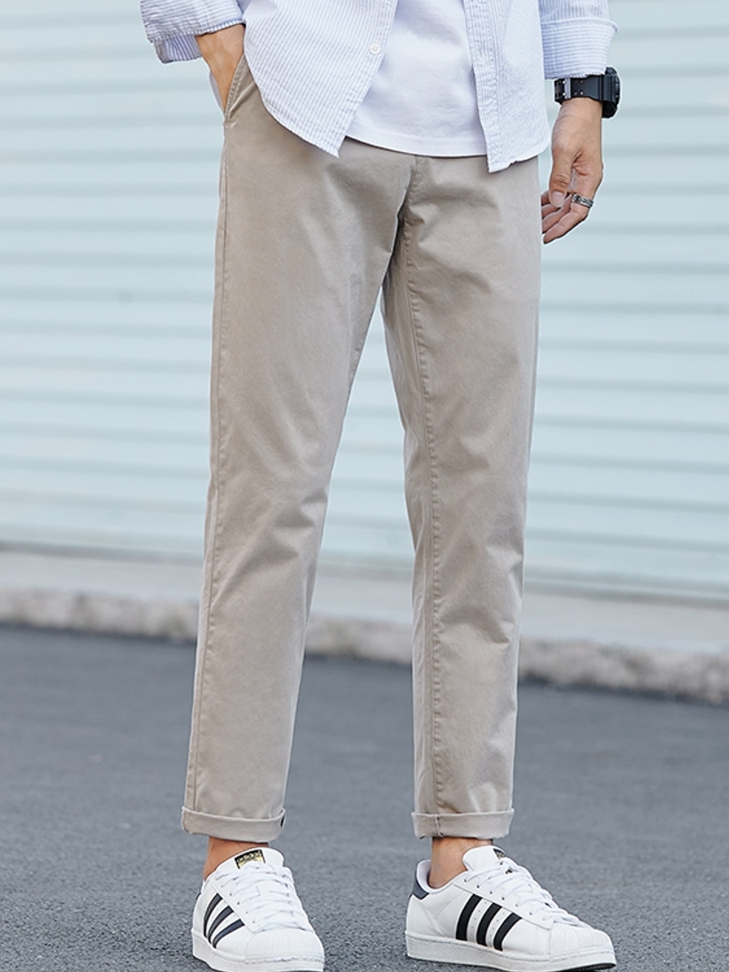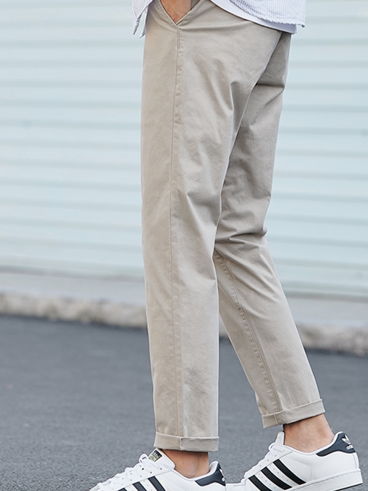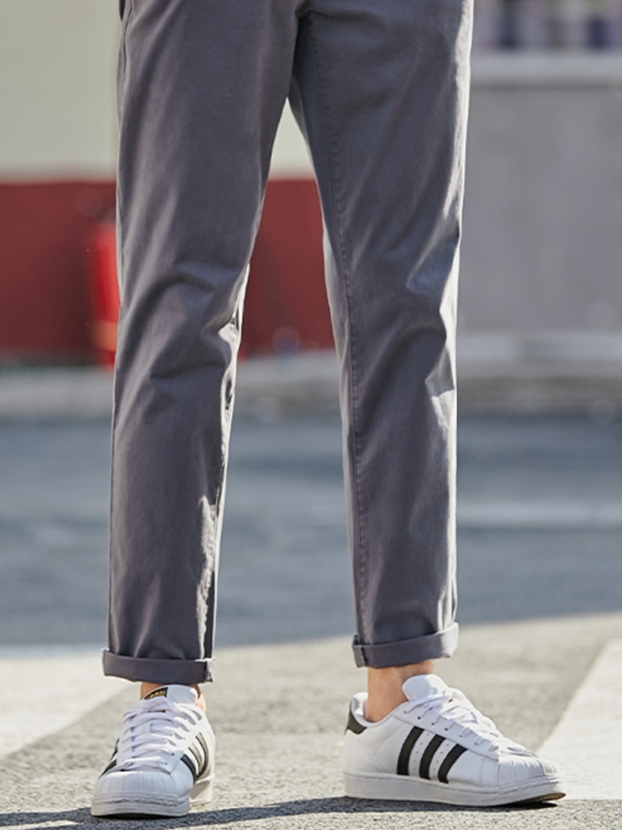 休闲裤九分的样式,在秋天也是不能漏掉的。而且可以选择这样浅色系列的小白鞋搭配起来的话,很有阳光大男孩的气质哦~
