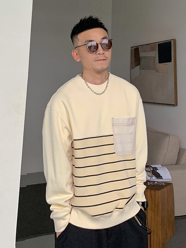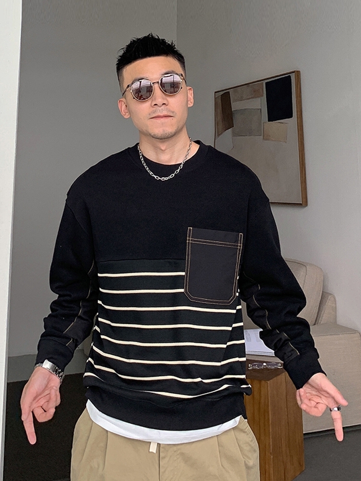 衣服使用纯白色,简单唯美的学院风,再配上黑色的条纹,袖口和下摆,微微开叉与黑色条纹相呼应形成很好的视觉点,简单又美丽的清新。