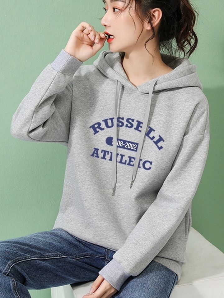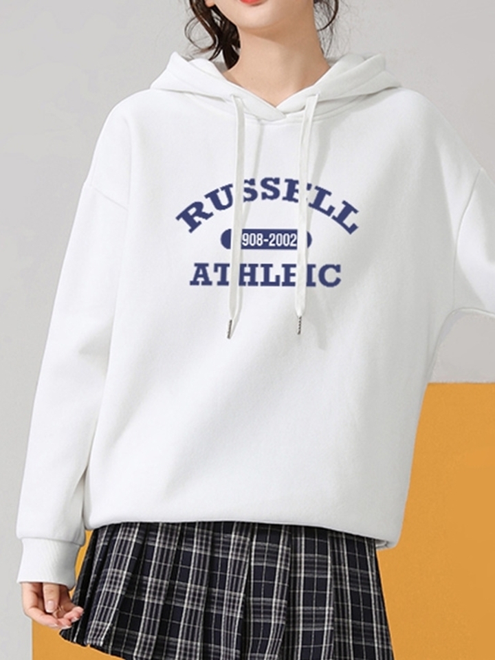 采用优质太空棉面料柔软亲肤舒适好穿,休闲的连帽抽绳装饰时尚大方,衣身撞色印花个性十足彰显随性不羁风范,前短后长的下摆拉长腿部线条显高显瘦。
