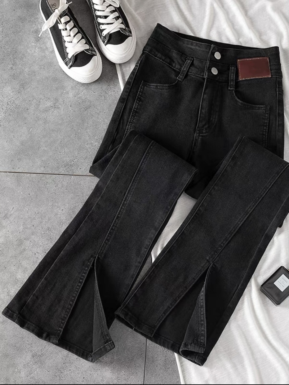 这款牛仔裤的设计很有特色,高腰的版型,很好的修饰了身材比例,显瘦效果很棒,搭配一件T恤,就能轻松穿出时尚感。