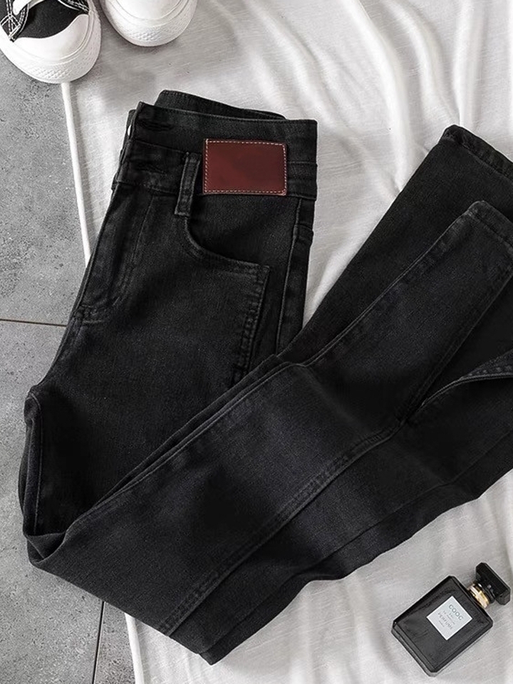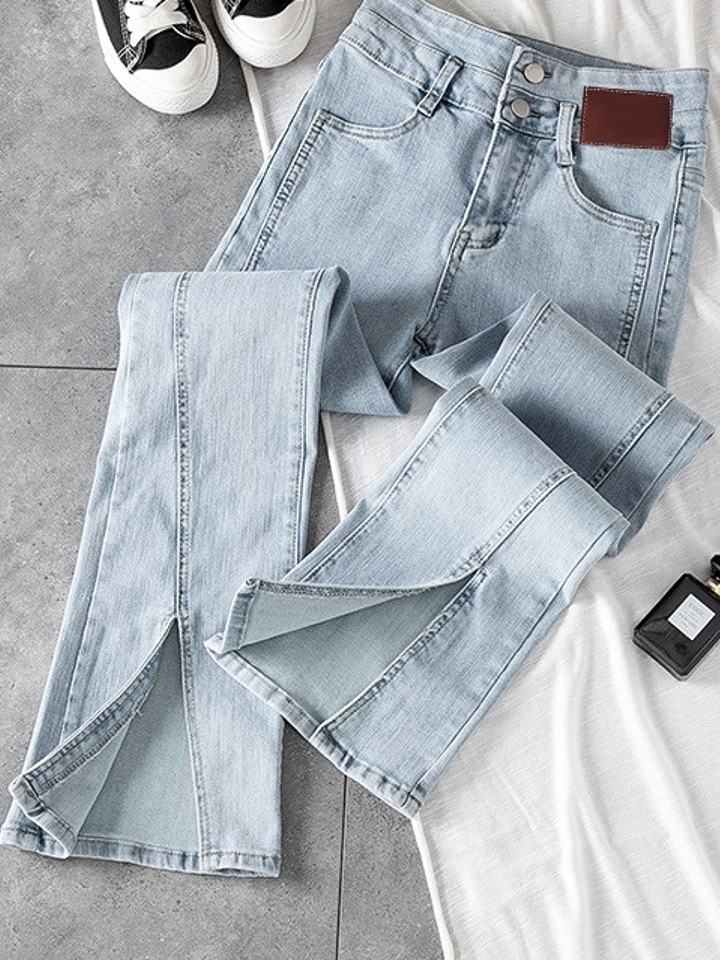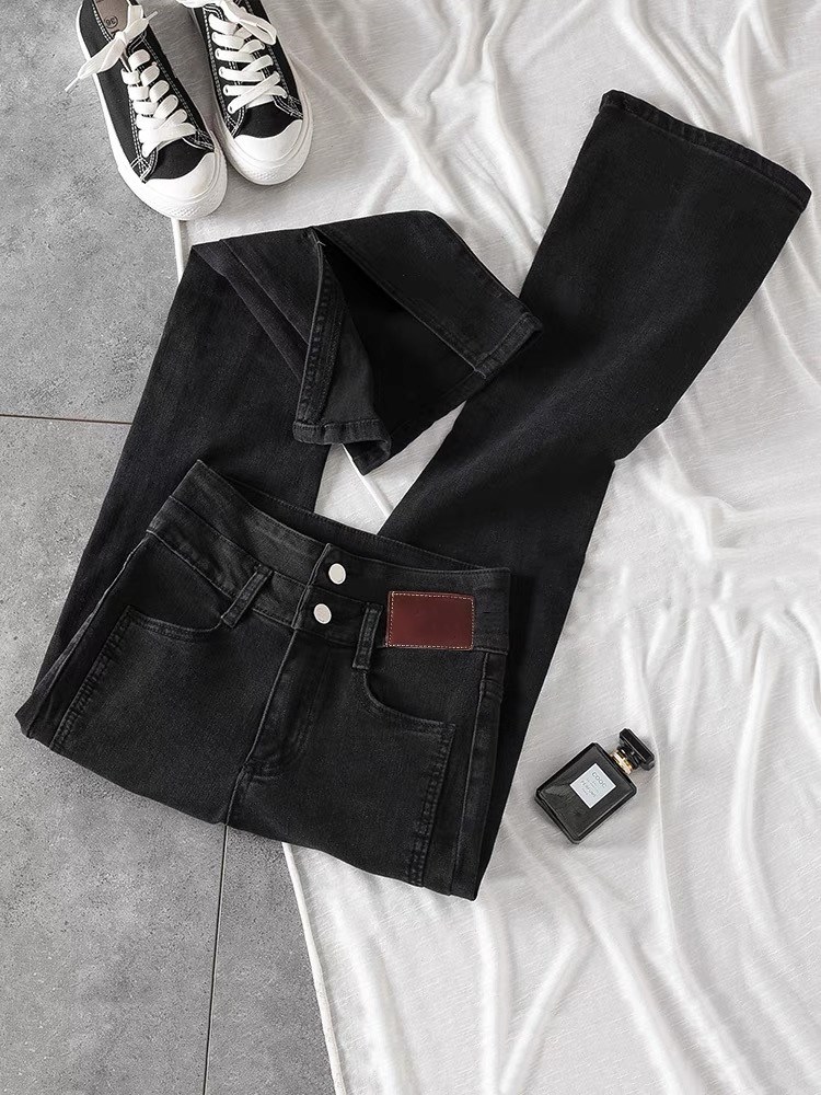高腰设计,拉长身材比例。高腰牛仔裤,显瘦显腿长。直筒裤型,修饰腿部线条。