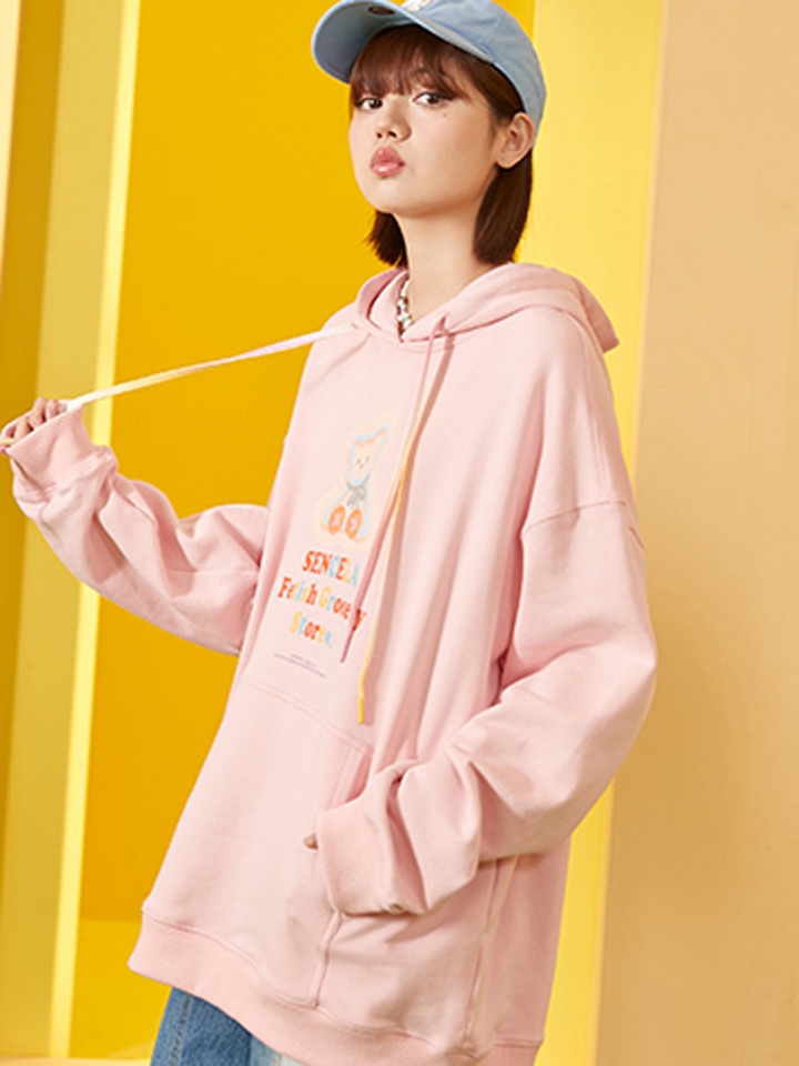 小熊印花卫衣,时尚的设计,简约大方,穿着时尚有范,休闲十足。别致的小熊印花点缀,凸显趣味好玩的气质,打造出俏皮活泼的少女范,别致减龄。宽松的版型,带来强大的包容性,适合各种身型,气质百搭。