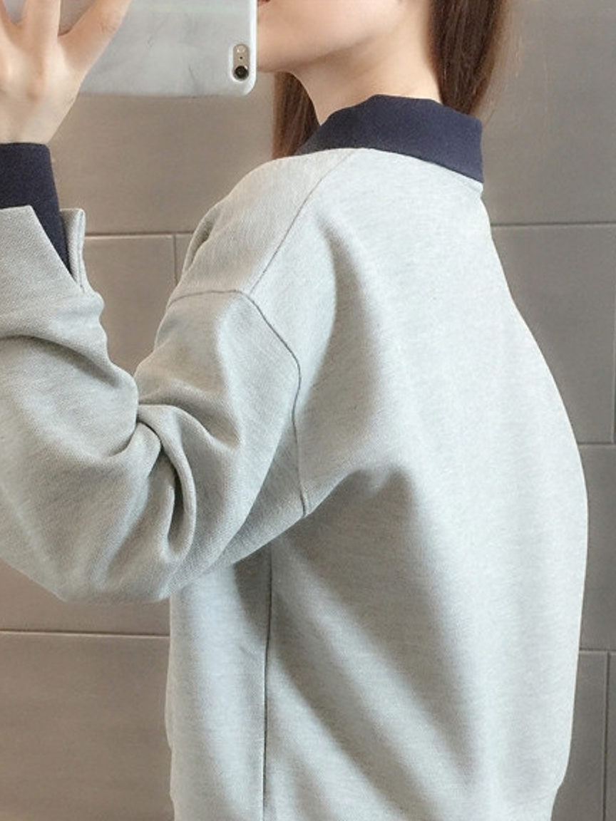 我挑选的是灰色的这一款,比较经典的配色,穿上很好的衬显了我的肤色,领口和袖口的撞色拼接,打破了单调与沉闷,让衣身显得很有层次感。
