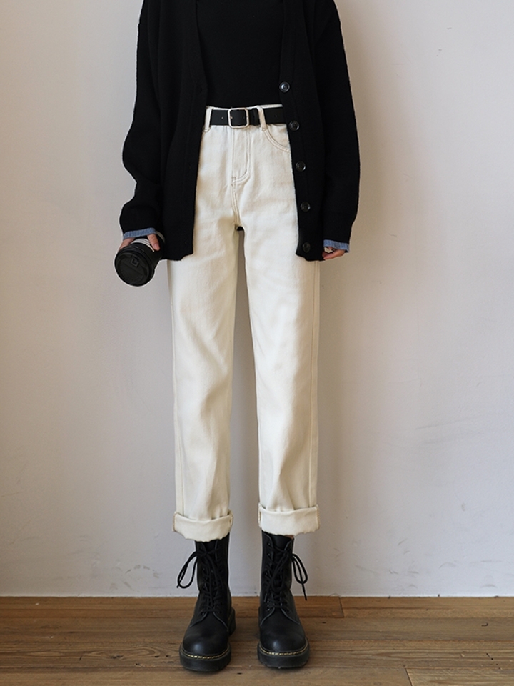 简约经典的款式设计,脚口翻边加入几分时尚,灰蓝水洗色调透着几分复古,时尚与复古气息融合的恰到好处;精选优质牛仔面料。