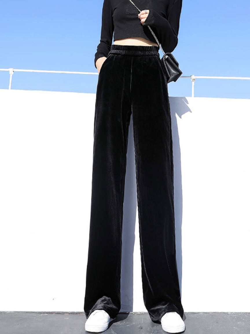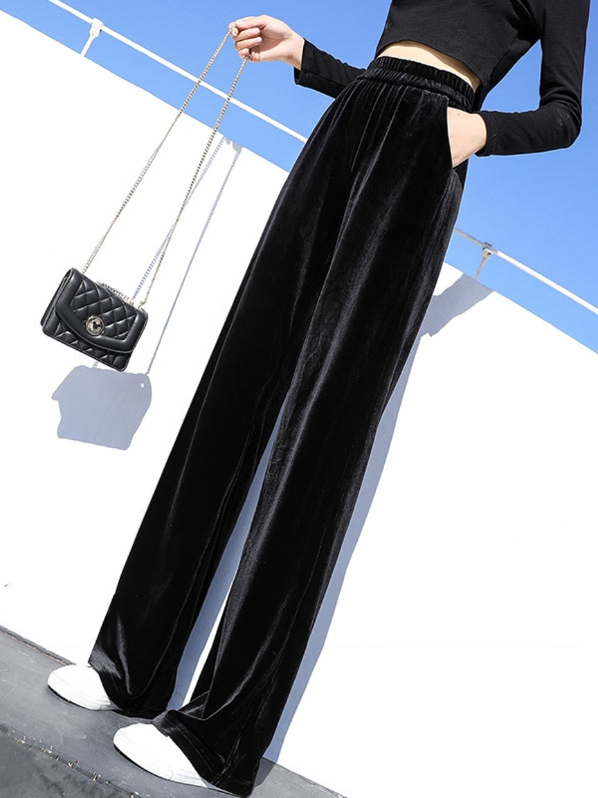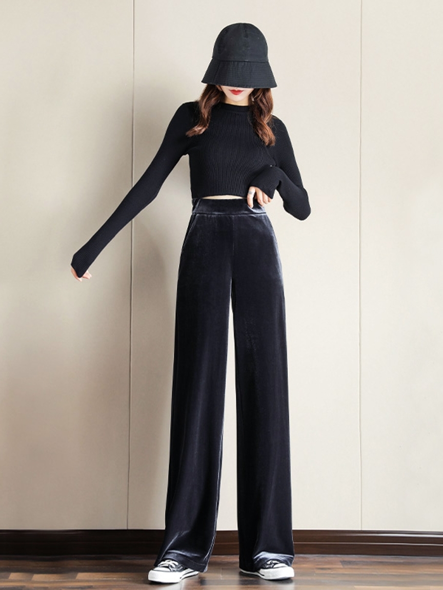 金丝绒材质,结合上时髦的阔腿裤版型,让整款裤型的设计腔调感更加强烈。宽松的裤型,可以更好的包容身材曲线,达到更佳的视觉显瘦效果,搭配起来也更具摩登范。