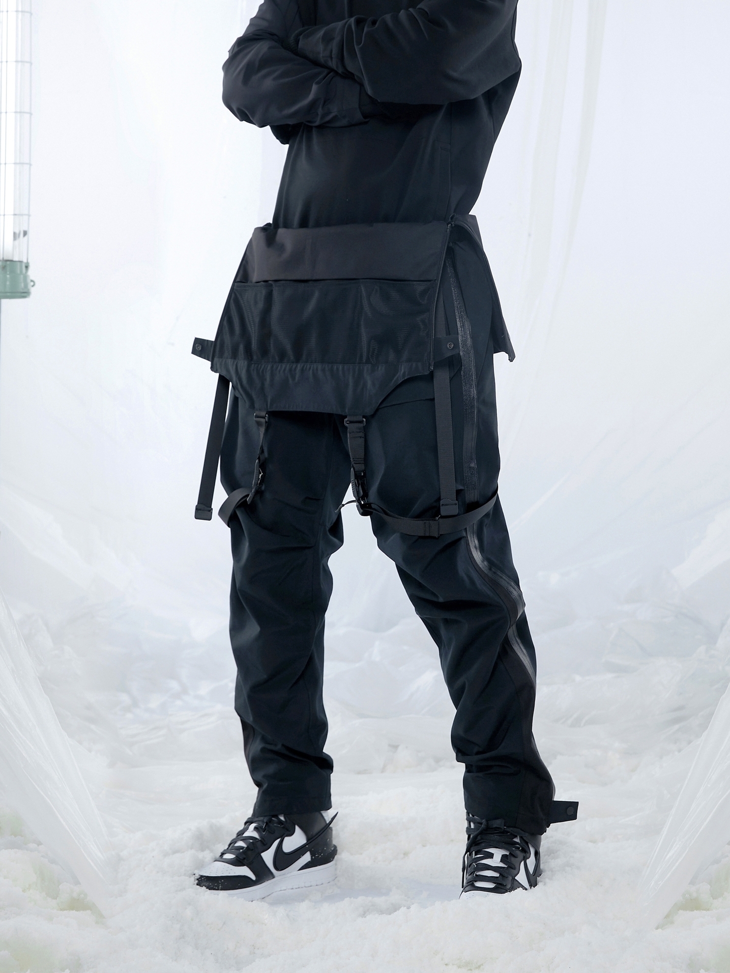 织的细密紧凑,耐磨性强。腰部有可调节的魔术贴,可以调节腰部的舒适度。裤子上的口袋上加有拉链,防止在滑雪运动的时候一些小物品的放置。脚口内衬里有防风裙的设计,可以完全防止风雪的入侵。