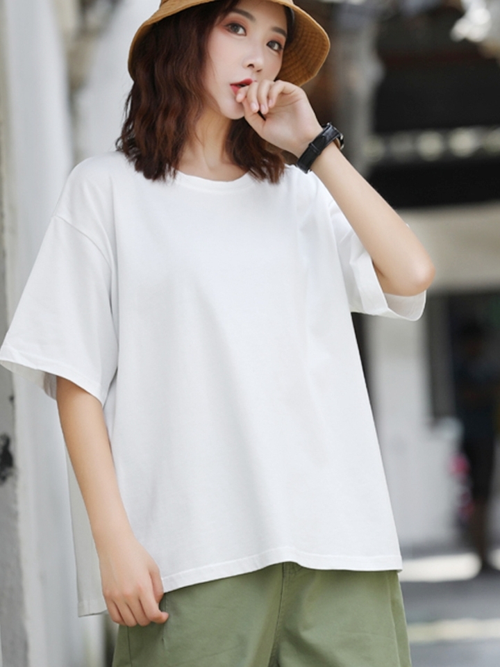 简洁的圆领设计,宽松的版型设计,慵懒风十足。