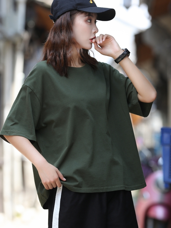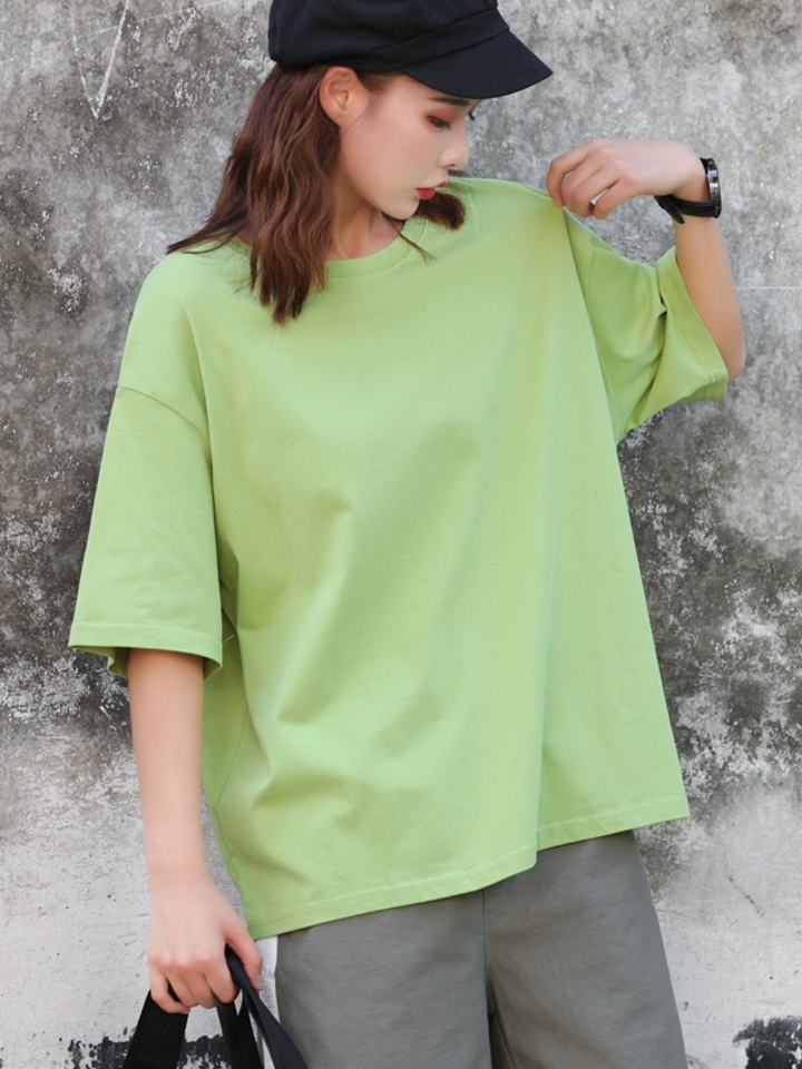 这款t恤是简约的风格,宽松的版型,时尚百搭,胸前的字母印花,很有个性,搭配牛仔裤或者短裤都很好看。