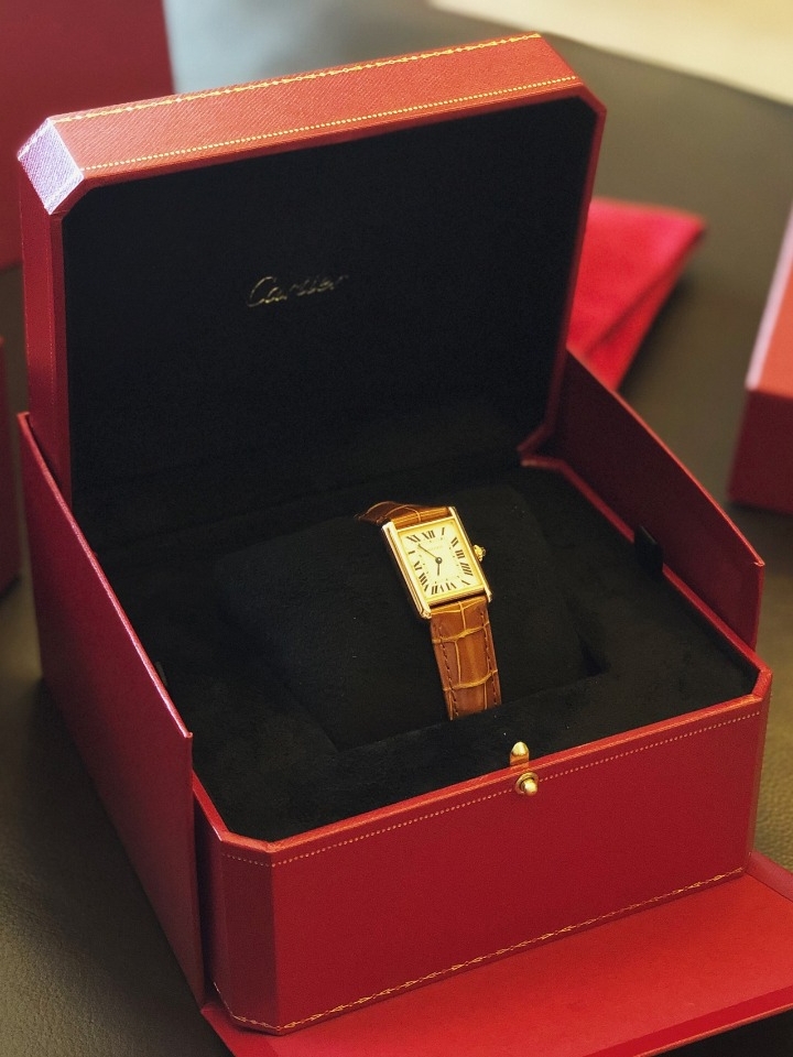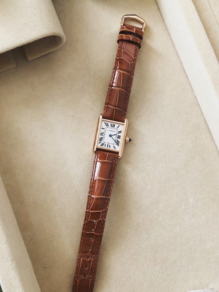 最近刚入手的Cartier黄金鳄鱼皮手表,真滴炒鸡好看哦!复古的方形设计,给人一种刚毅威猛的感觉,罗马刻度点缀,增添丝丝的古典气息,令这款腕表变得越发的有魅力。