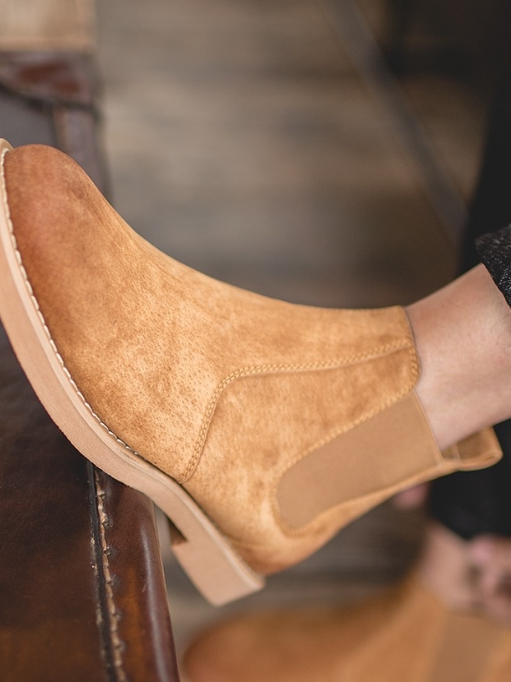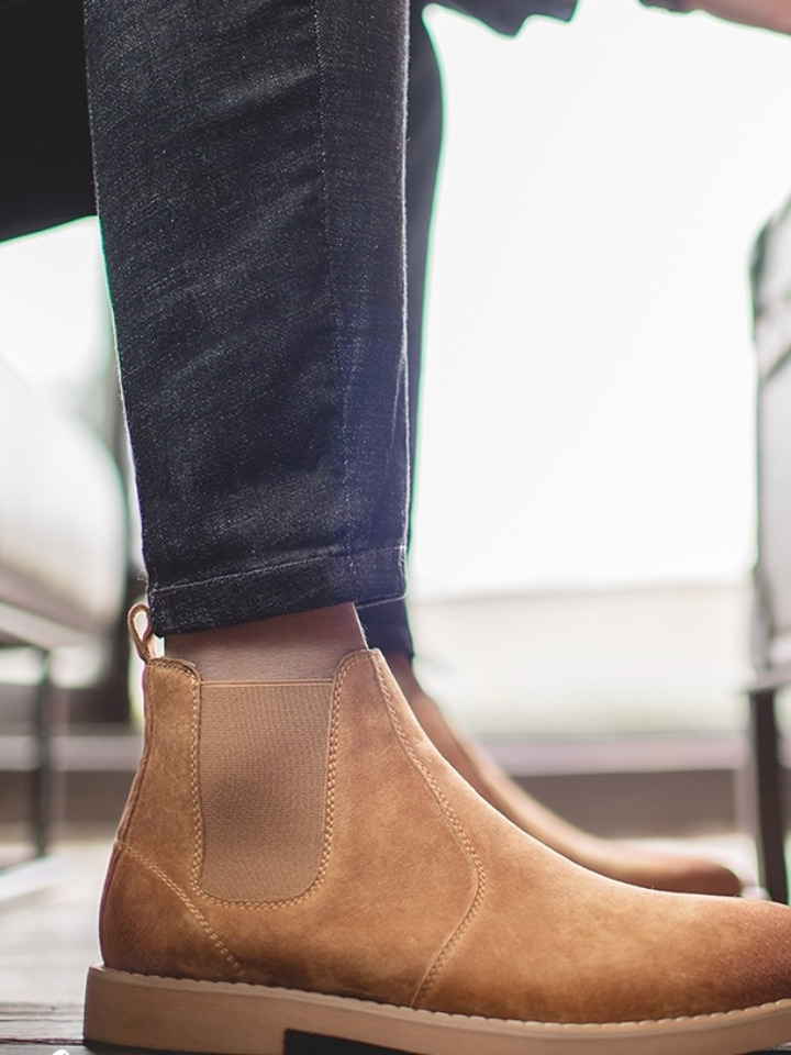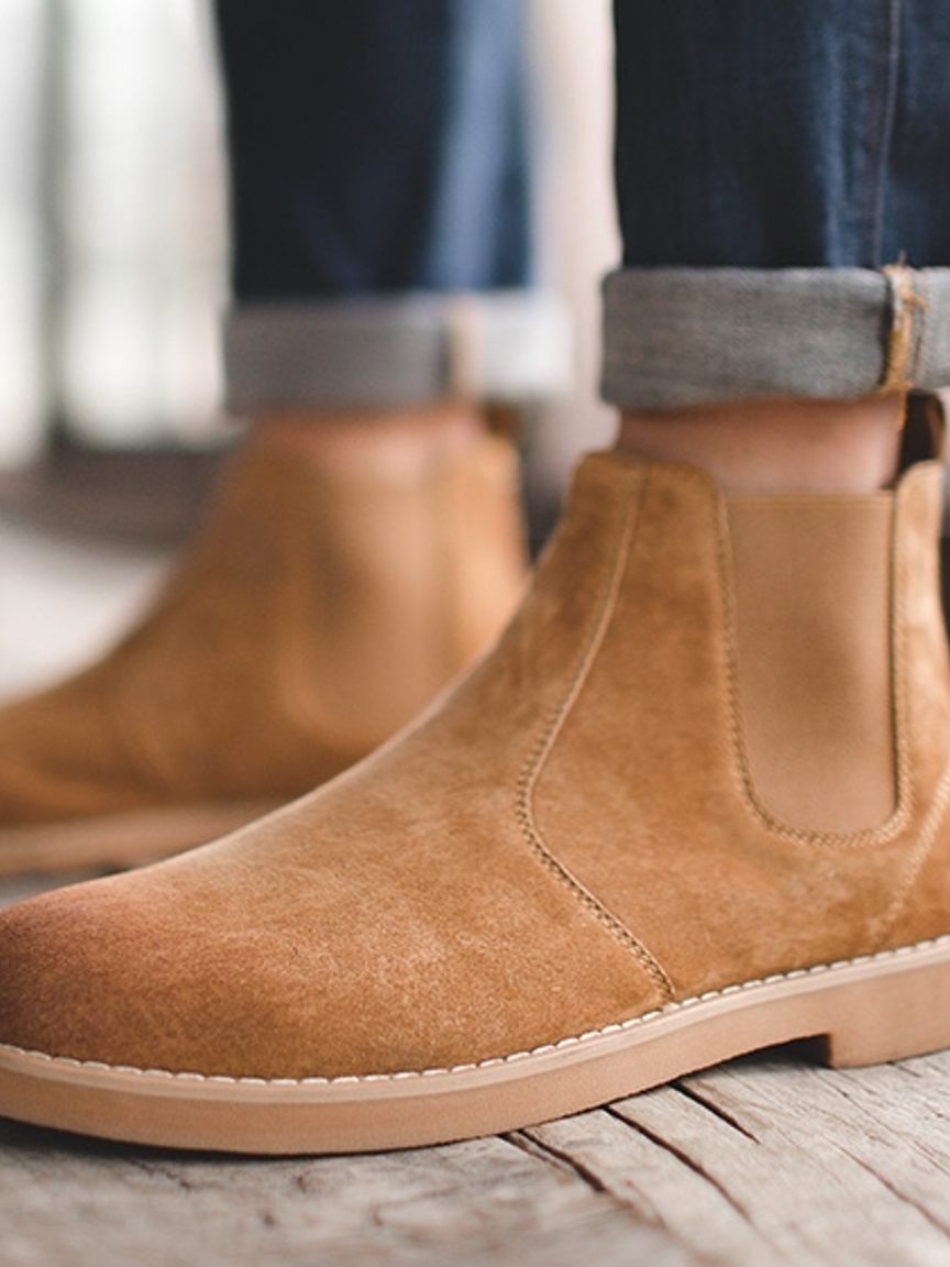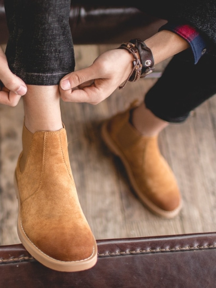 擦色处理的鞋面,气质独特,也颇具视觉层次感。靴筒上拼接松紧带,省去了系带的繁琐,穿脱更方便。