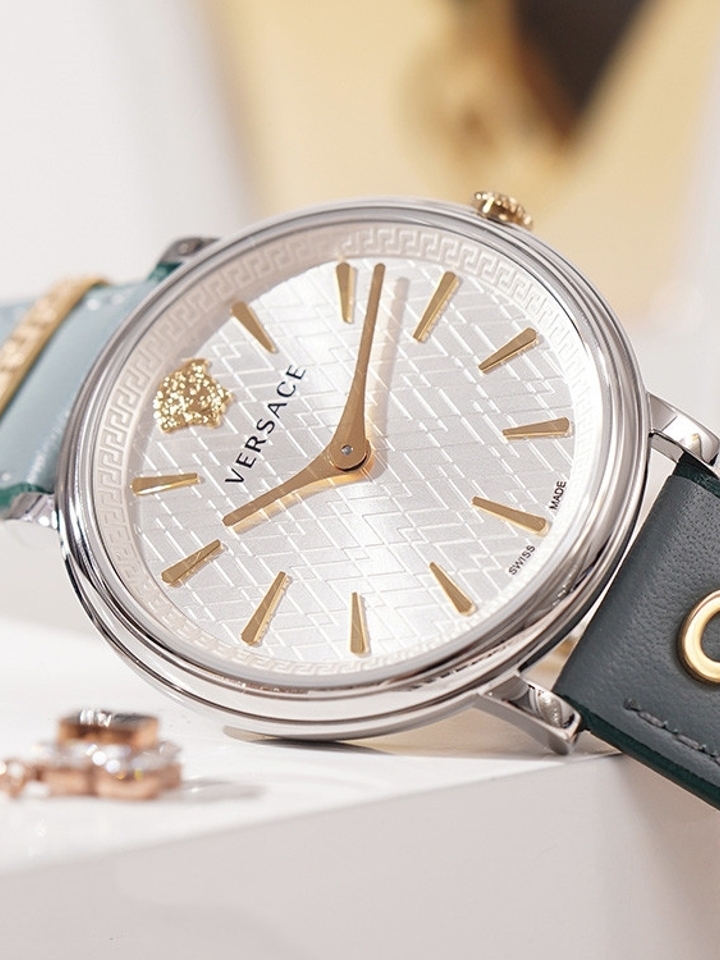 纯净的拉丝表盘搭配简约的条形刻度和三针设计,让您轻松享受闲暇时光,尽显女性优雅柔美的气质