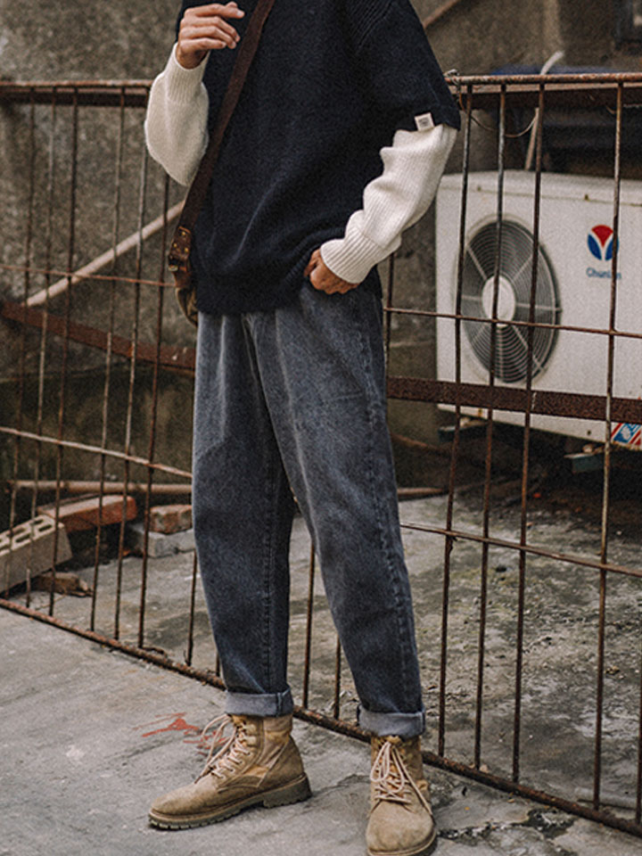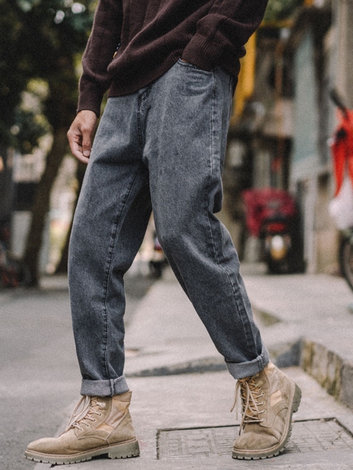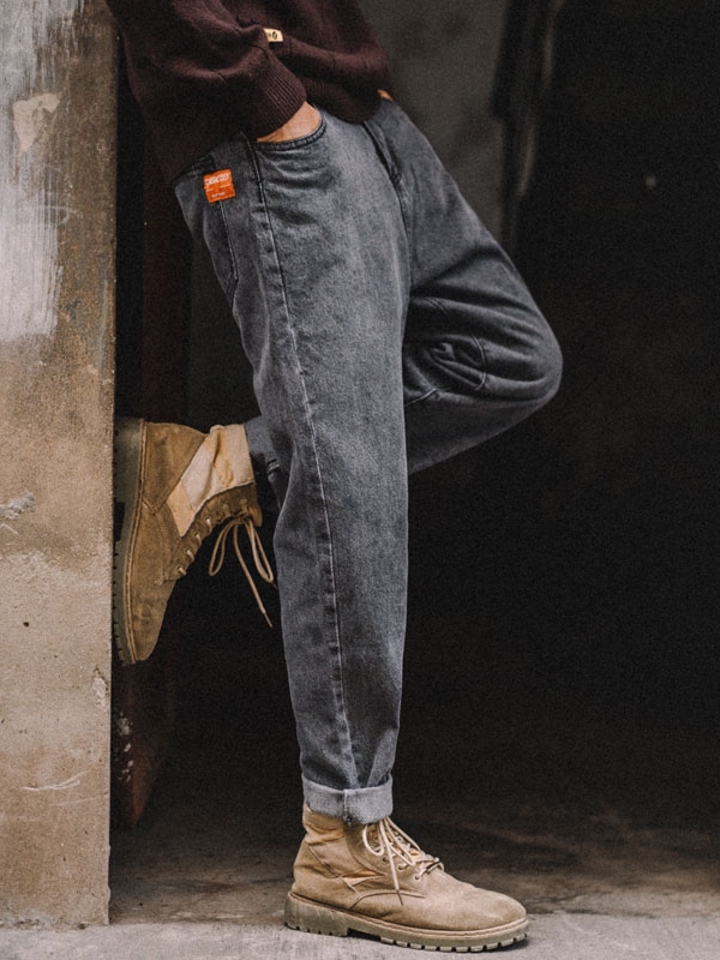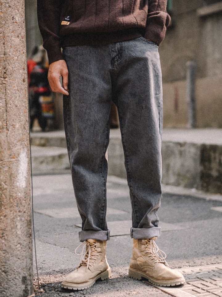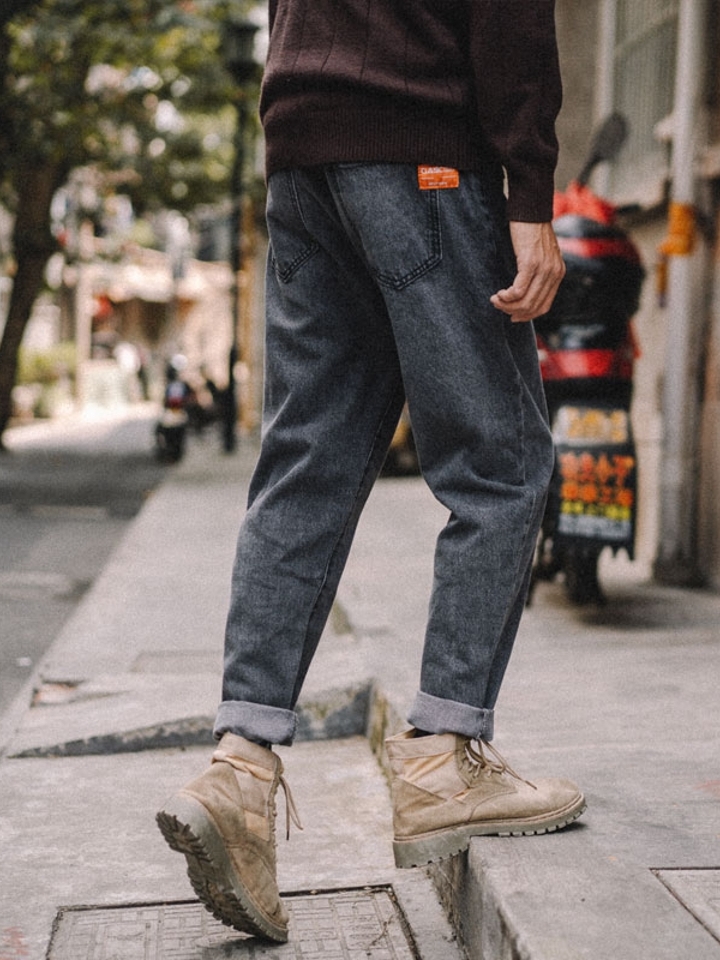 复古烟熏水洗做旧小直筒牛仔裤,制作工艺 精湛,水洗时尚元素体现的淋漓尽致,裤脚可以随意的挽起,彰显不羁的个性。