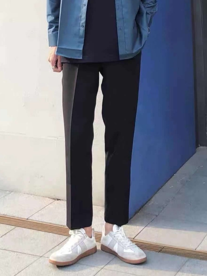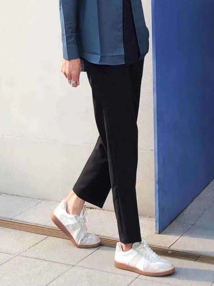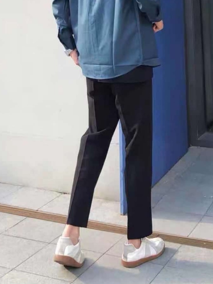 小宽松的样式,完美遮住腿部缺陷,干练不显拖沓,穿出一丝休闲出街风范。