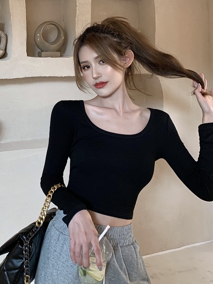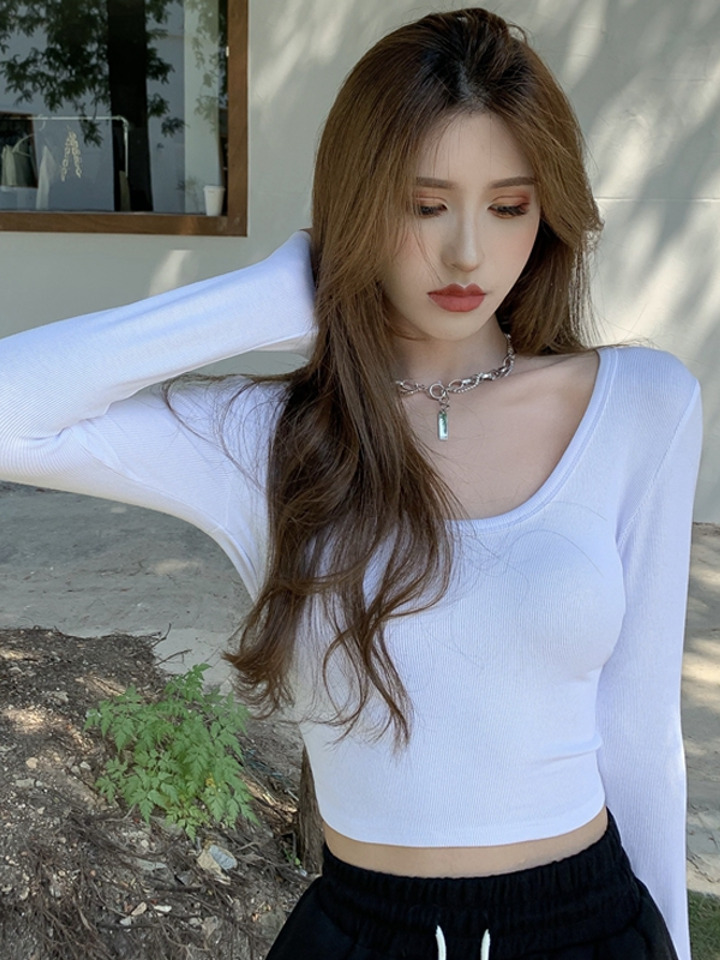 天气闷热,一件U领纯色的T恤衫,修饰身形,尽显小蛮腰。