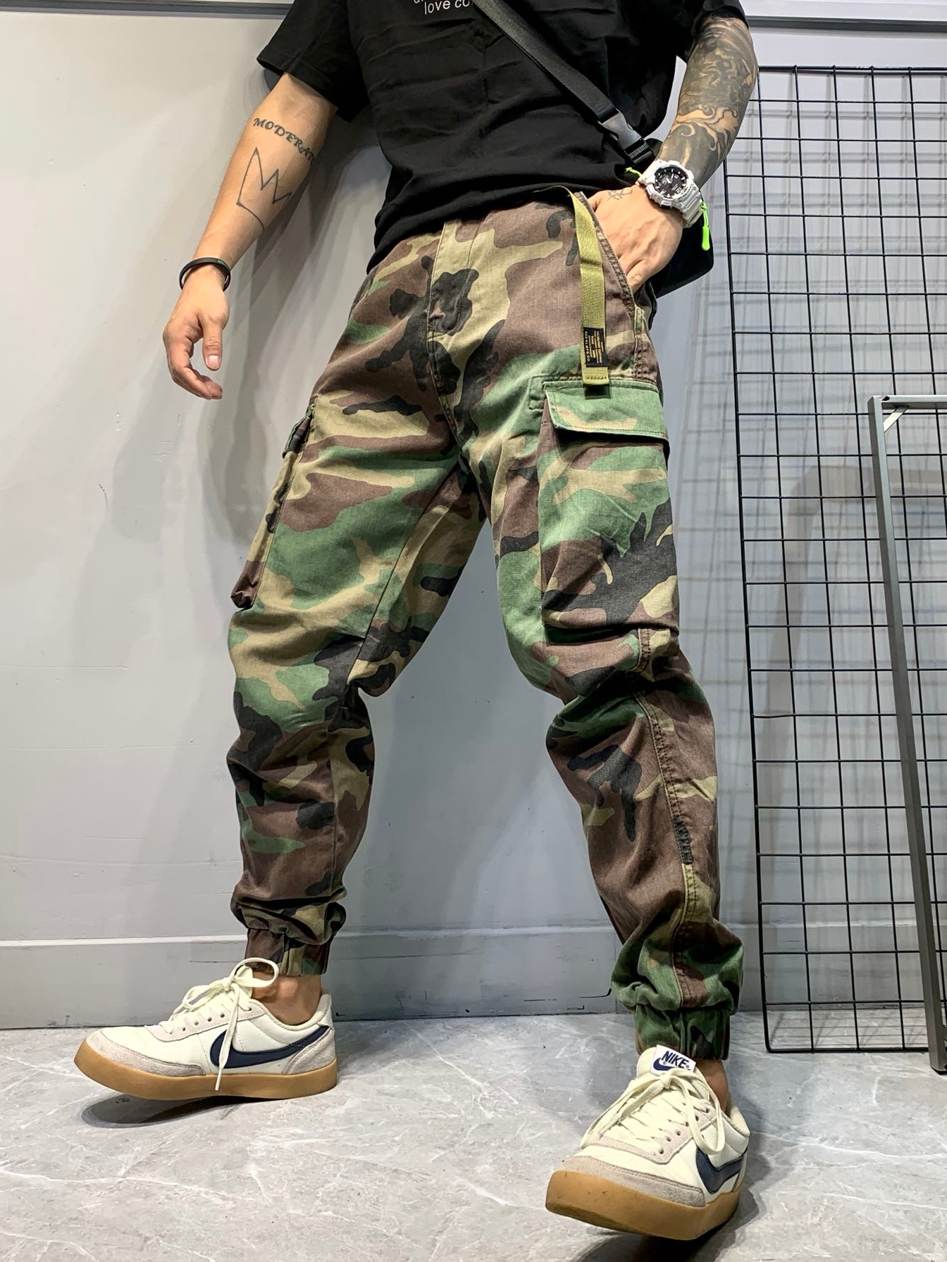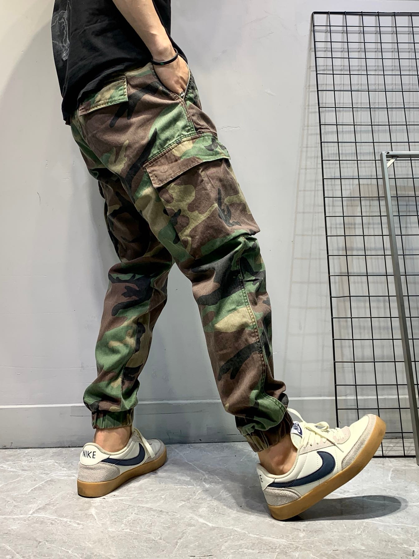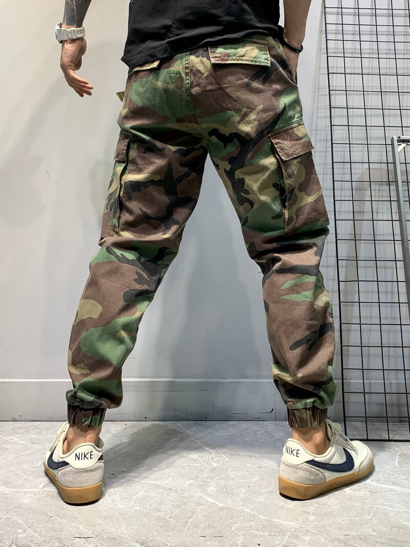 这款工装裤采用腿部贴袋设计,丰满整体内容又不影响一体结构感,金属铆钉装饰,细致不显平庸,后腰处的带扣是一处出彩的设计。