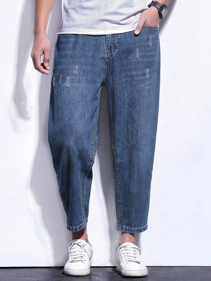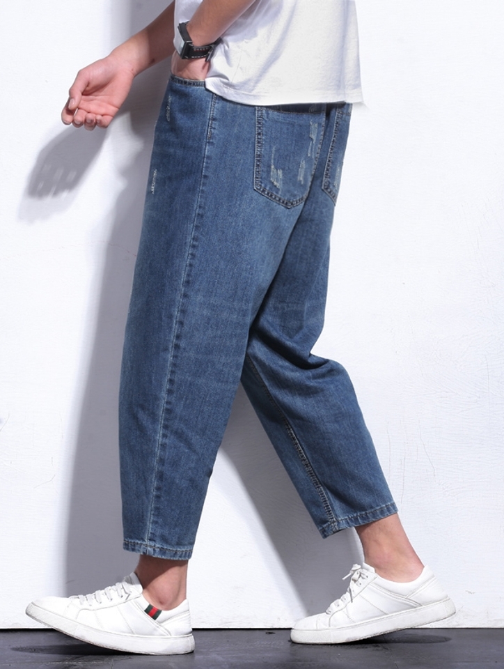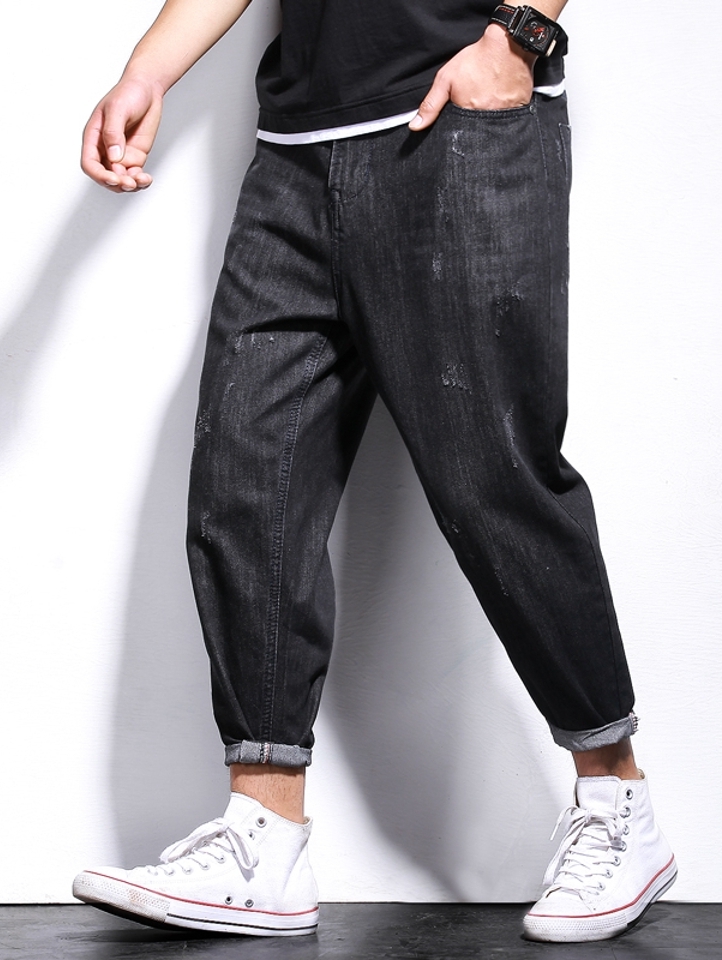 九分哈伦牛仔裤,穿上露出一截脚踝,非常显瘦显高挑,高腰的款式,非常舒适,休闲风格很百搭。纯棉面料,做工工整,面料舒适,小脚收腿的版型,卷边的效果更好看。