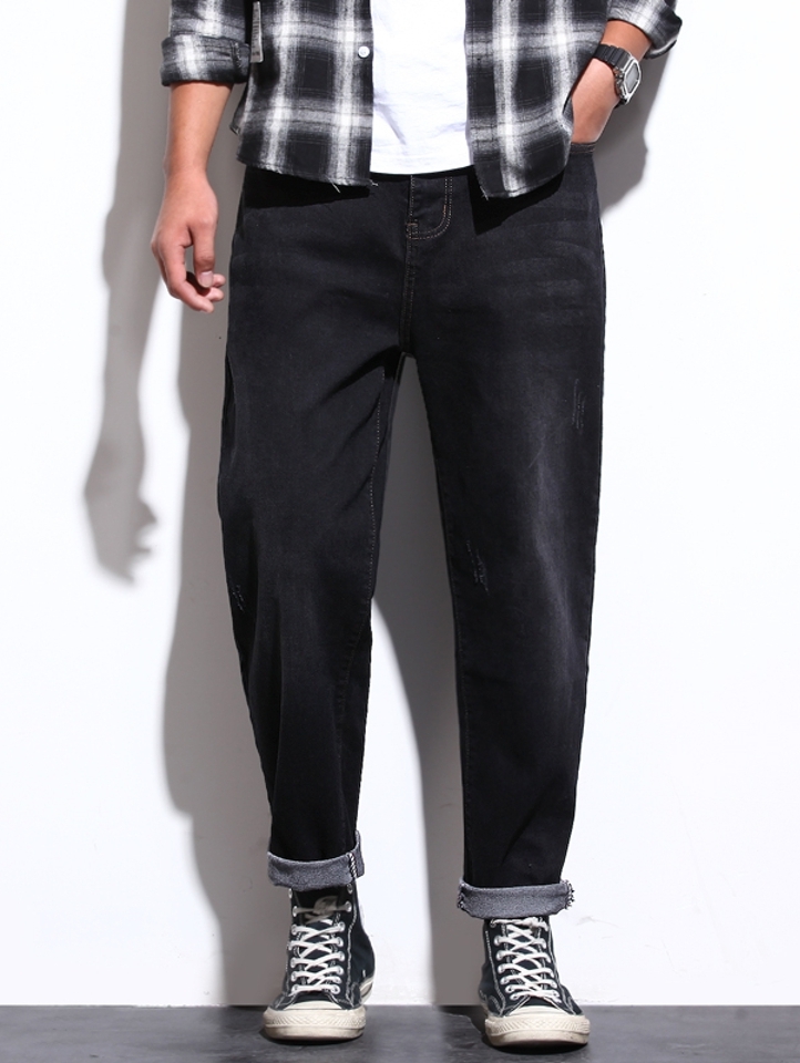 小编自己非常喜欢的一款牛仔裤,哈伦微垮的宽松裤型,小直筒的裤脚设计,非常适合小腿略粗的亲们,裤脚卷起当做九分裤穿,上身舒适又不失有型~