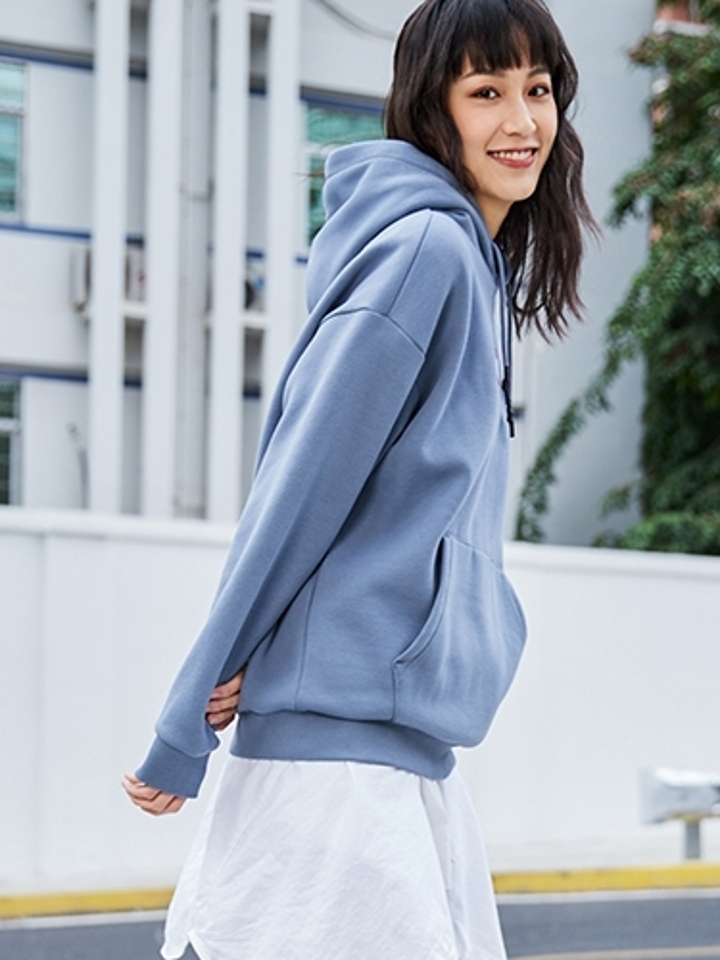 抽绳连帽的设计,宽松的版型设计,藏肉又显瘦。