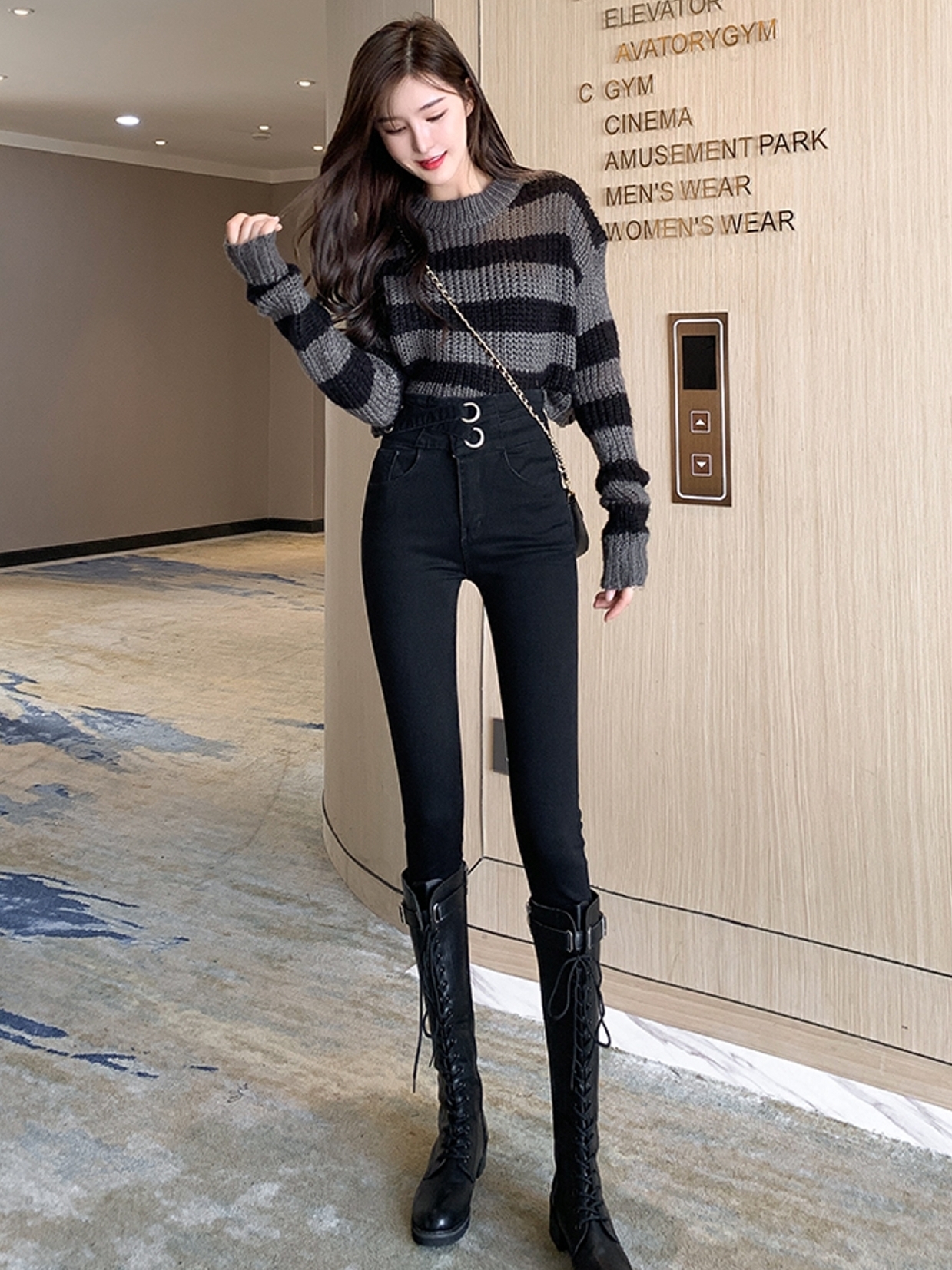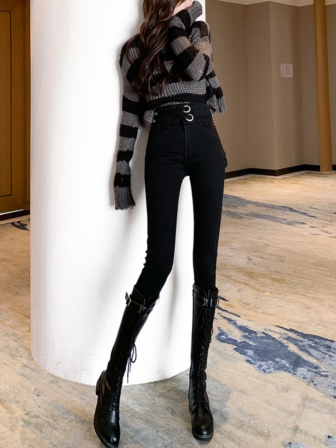 这款小脚裤采用高弹的柔软面料剪裁制作,面料的质地结实耐磨,久穿也不会起球,手感柔软不失挺括感,还具有不错的弹性和抗皱性,经久耐穿。
