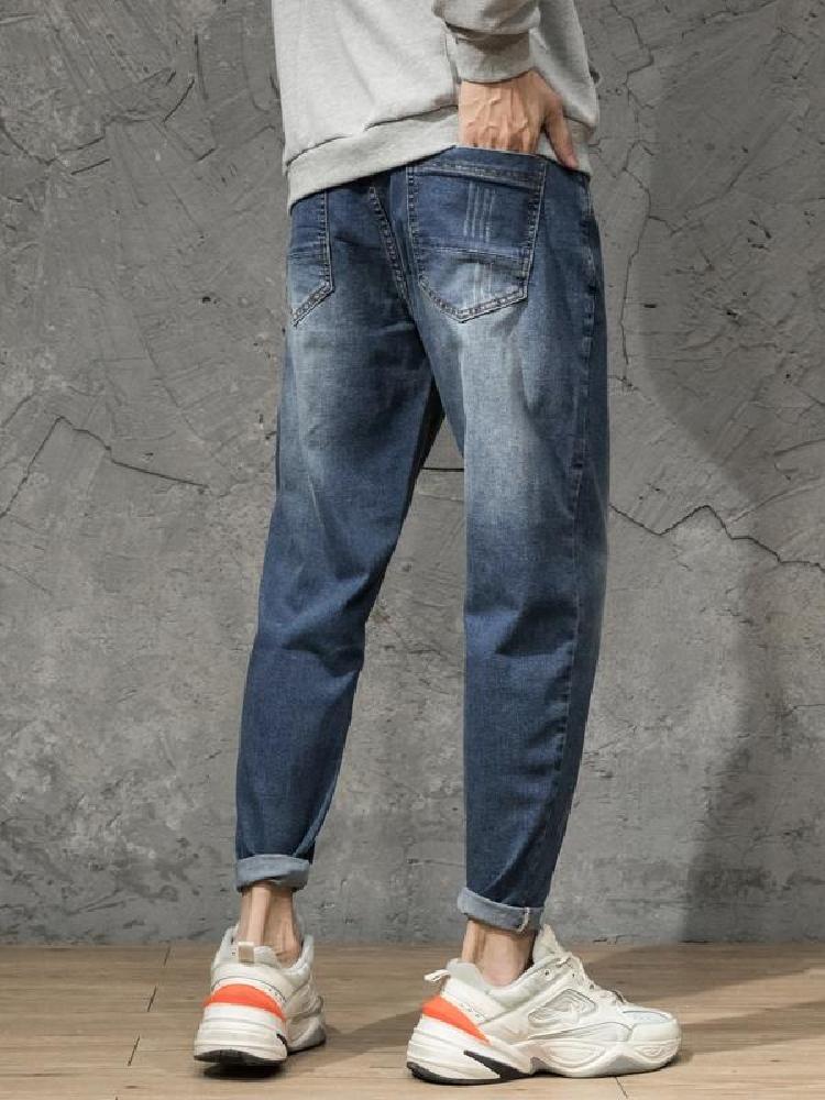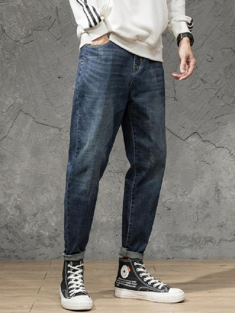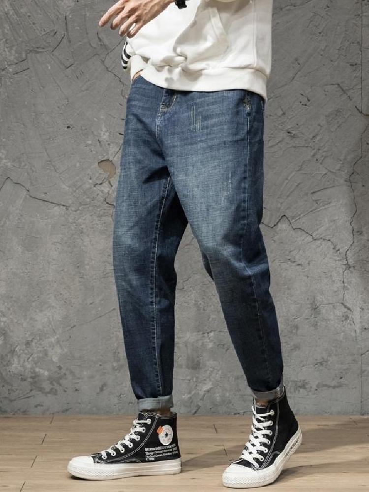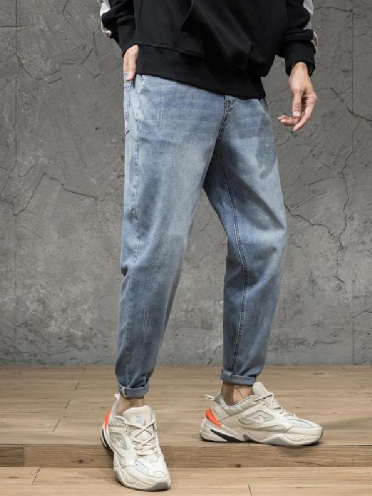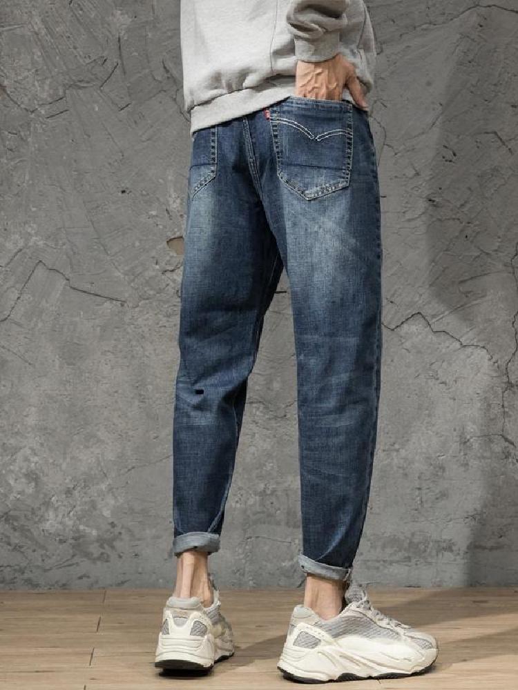 原创设计全棉弹力小脚牛仔哈伦垮裤,个性潮流的徽章贴标,街头感十足,全面弹力面料,微跨的版型设计,哈伦裤版型,时尚个性。