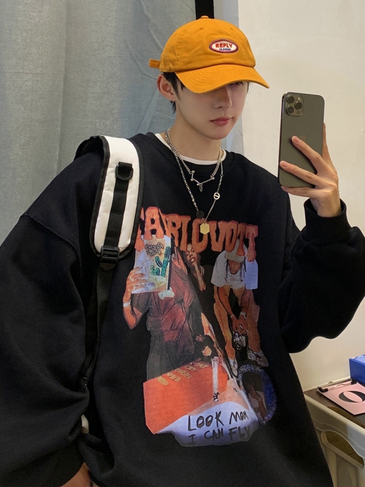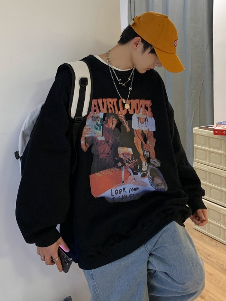 ,背后的图案才是整身的亮点,具有浓浓的欧美街头复古气息,个性涂鸦,街头风魅力倍增。