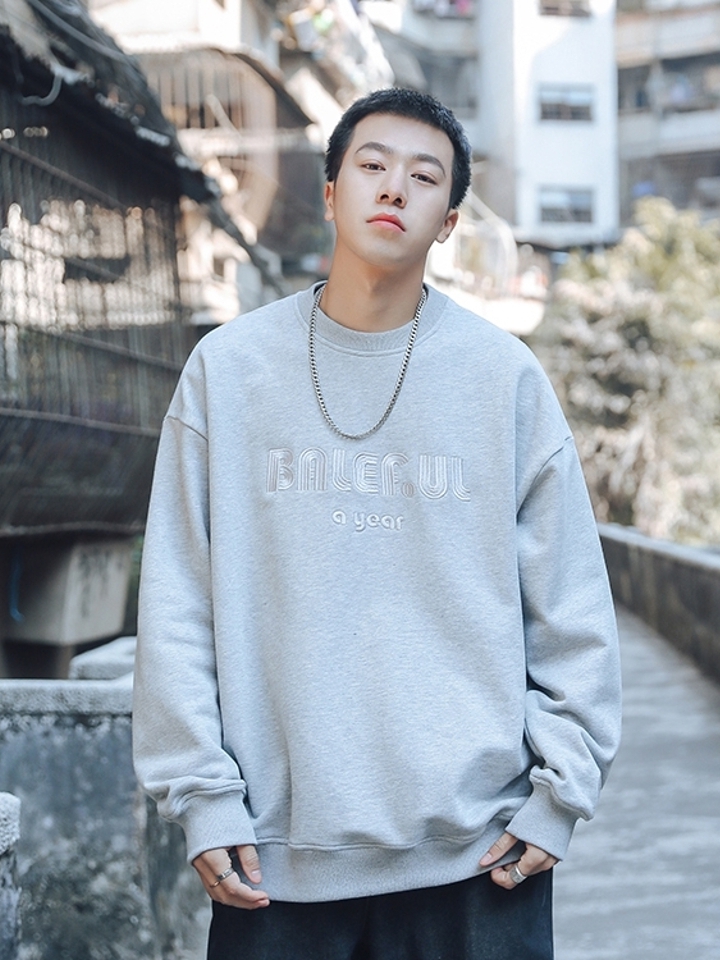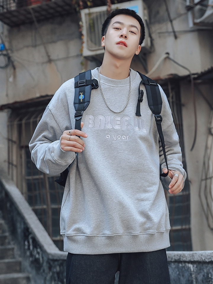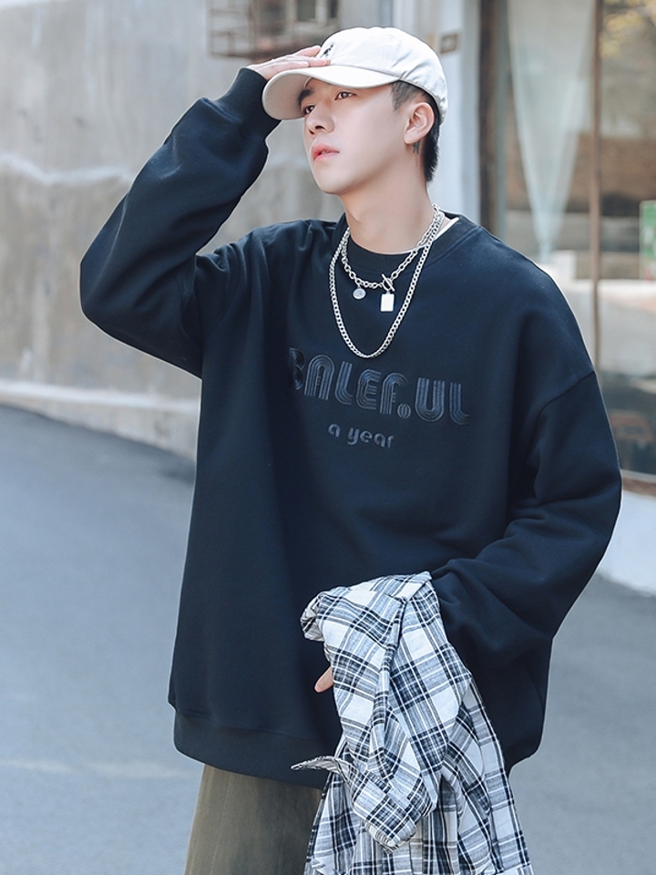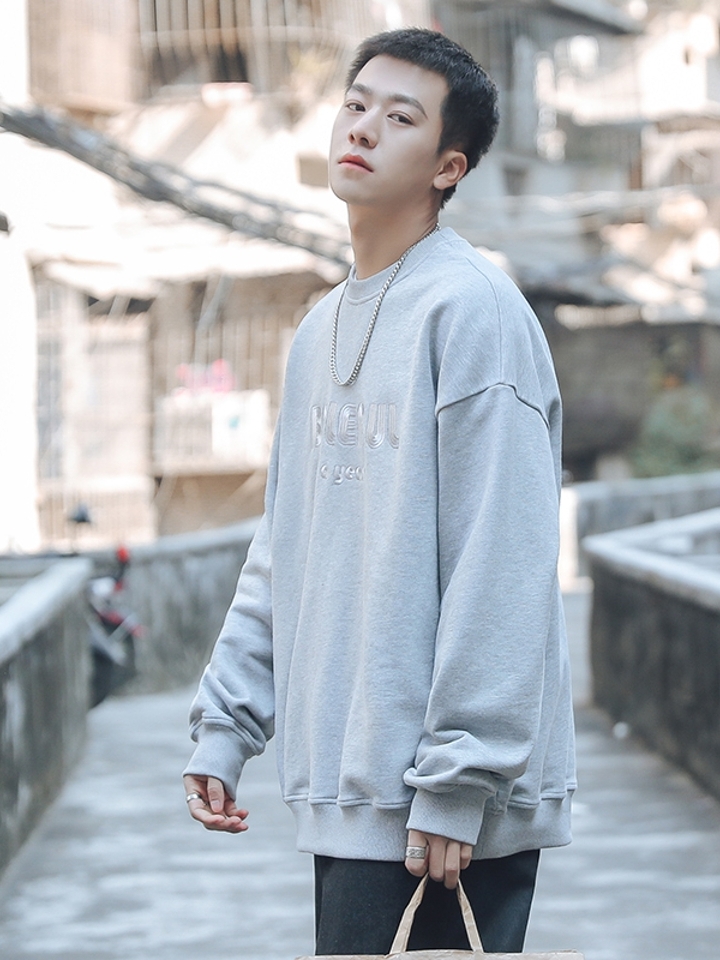比较简约型的一款卫衣,带着女性浓郁的学院风范,圆领插肩长袖的设计凸显了简洁大方,袖口以及衣摆处的螺纹边拼接针法细密,添了份层次感