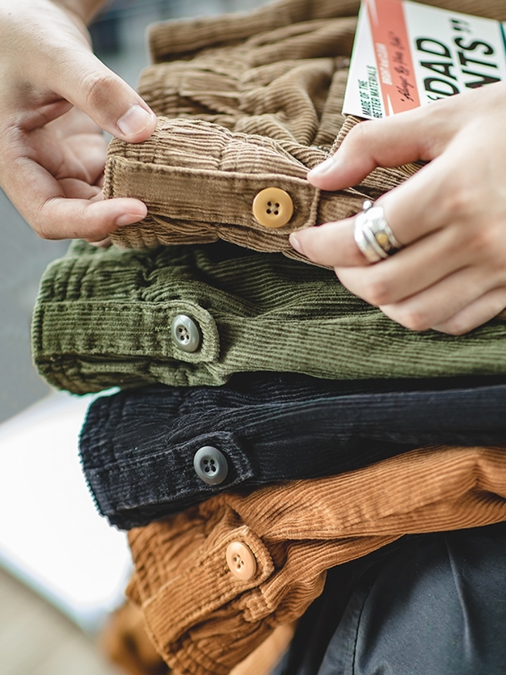 纯色的色调,素雅而纯净的感觉,看起来安静而知性。优质灯芯绒面料,板实保暖,给你别样舒适的肌肤触感。干净利落的剪裁,不需要过多的装饰,收住温度,让曲线更轻盈的秘密。