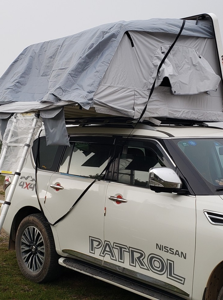 这是一款韦帕的全自动的车顶帐篷,它的做工非常的严谨细致,而且放在车上可以说完美的搭配。