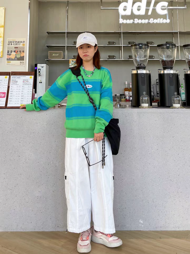 简约的高腰设计,搭配上修身的版型,上身显瘦又显高。