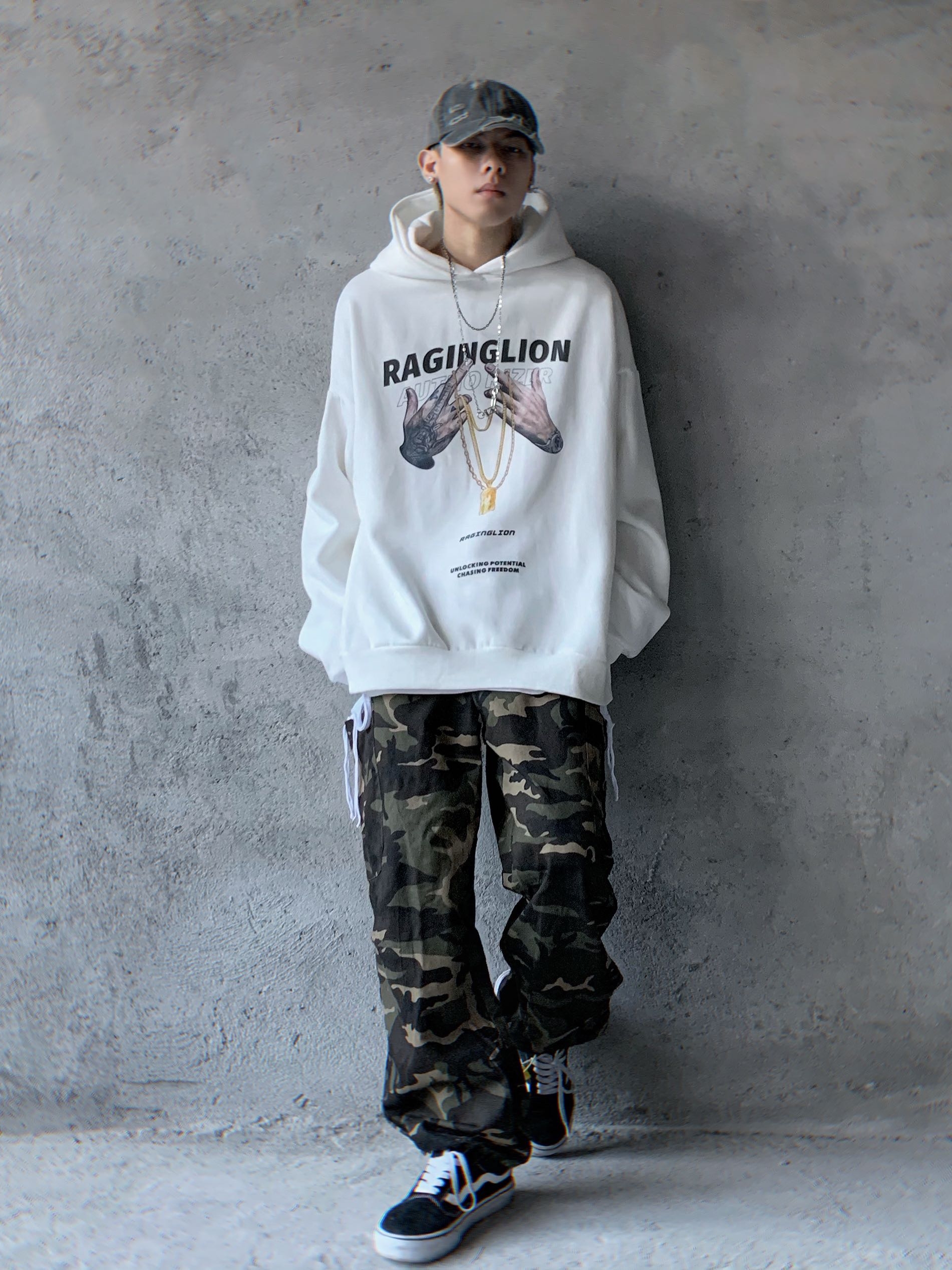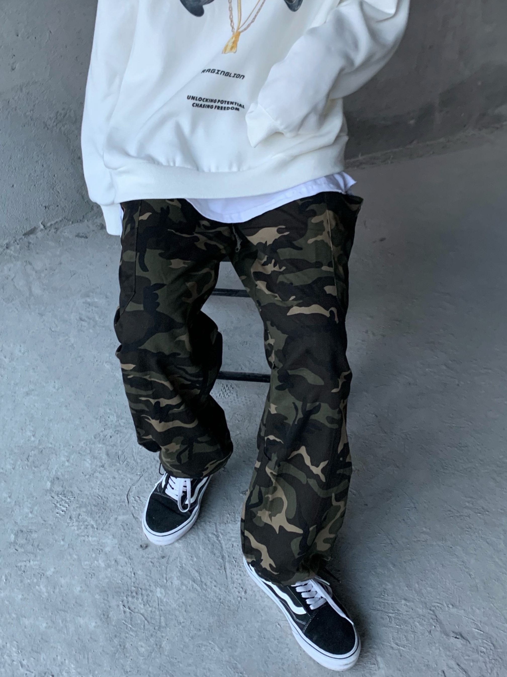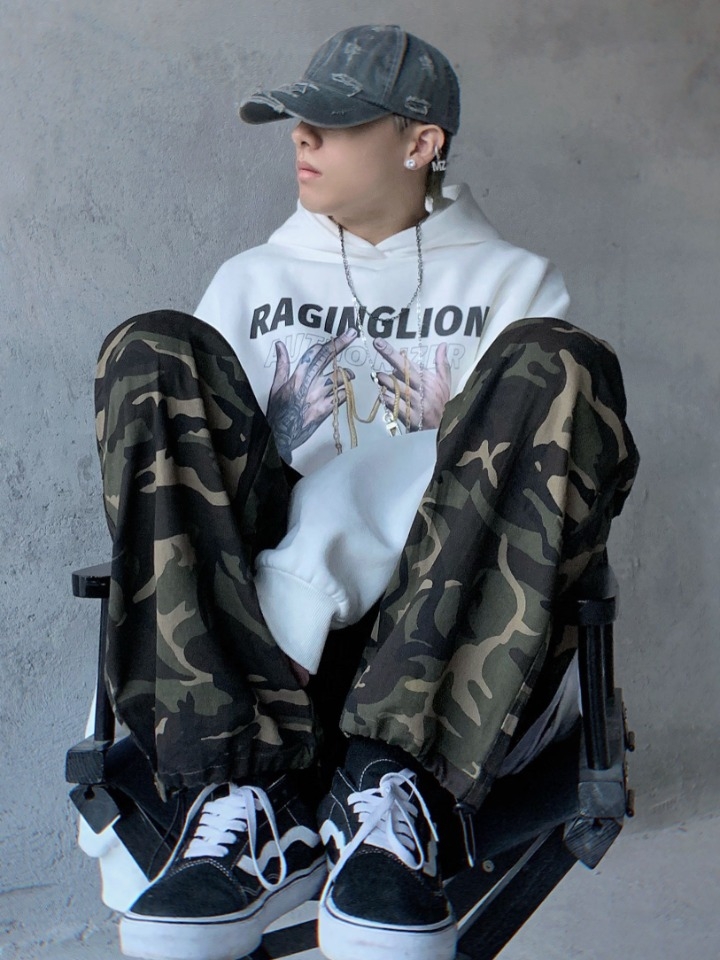 迷彩的印花是时下大热的元素,备受潮男们的追捧与青睐。宽松阔腿样式搭配弹力束脚设计,上身尽显干练利落,也能变换裤型穿着。