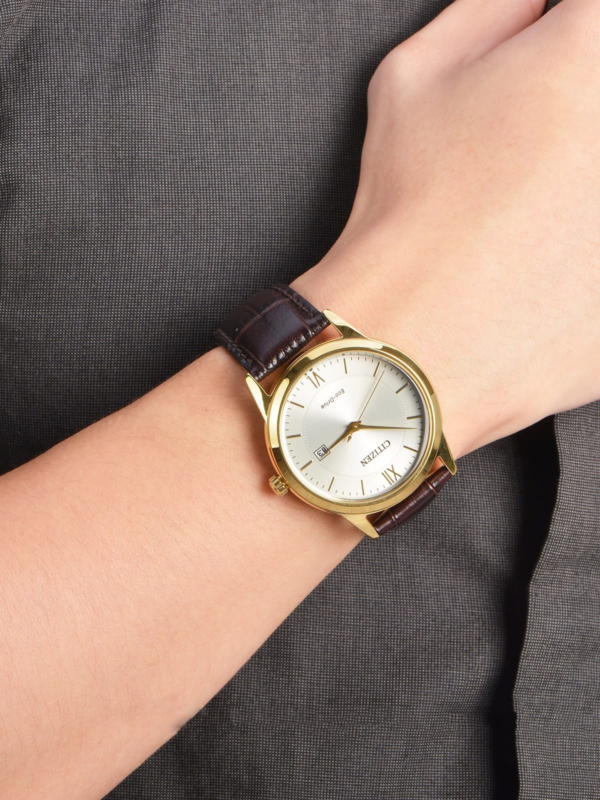 内置高精度Eco-Drive光动能机芯,任何可见光源的存在就能为其充电,满电后在无光环境也可提供2个月的精准走时。并具有夜光,日历,100米防水,再配以棕色真表带,带来出色的透气舒适感。
